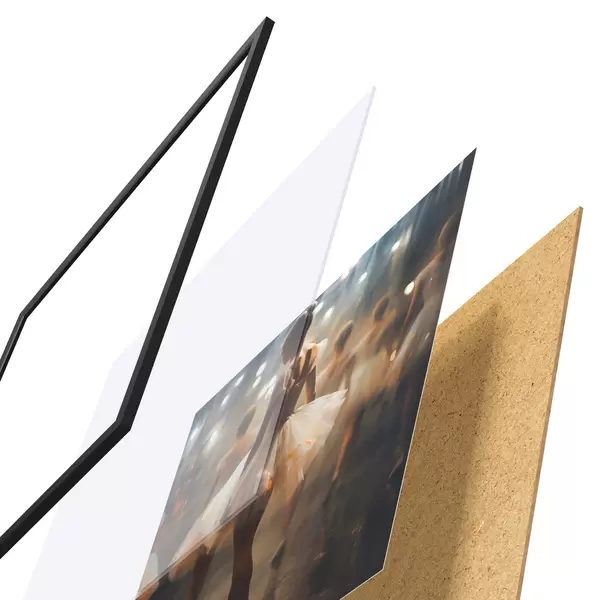 Plakatą sudaro rėmas, pleksiklas, atspausdintas vaizdas ir medžio drožlių plokštės pagrindas. Plakatą galima iš karto pakabinti ant sienos dėl kitoje pusėje esančių laikiklių.