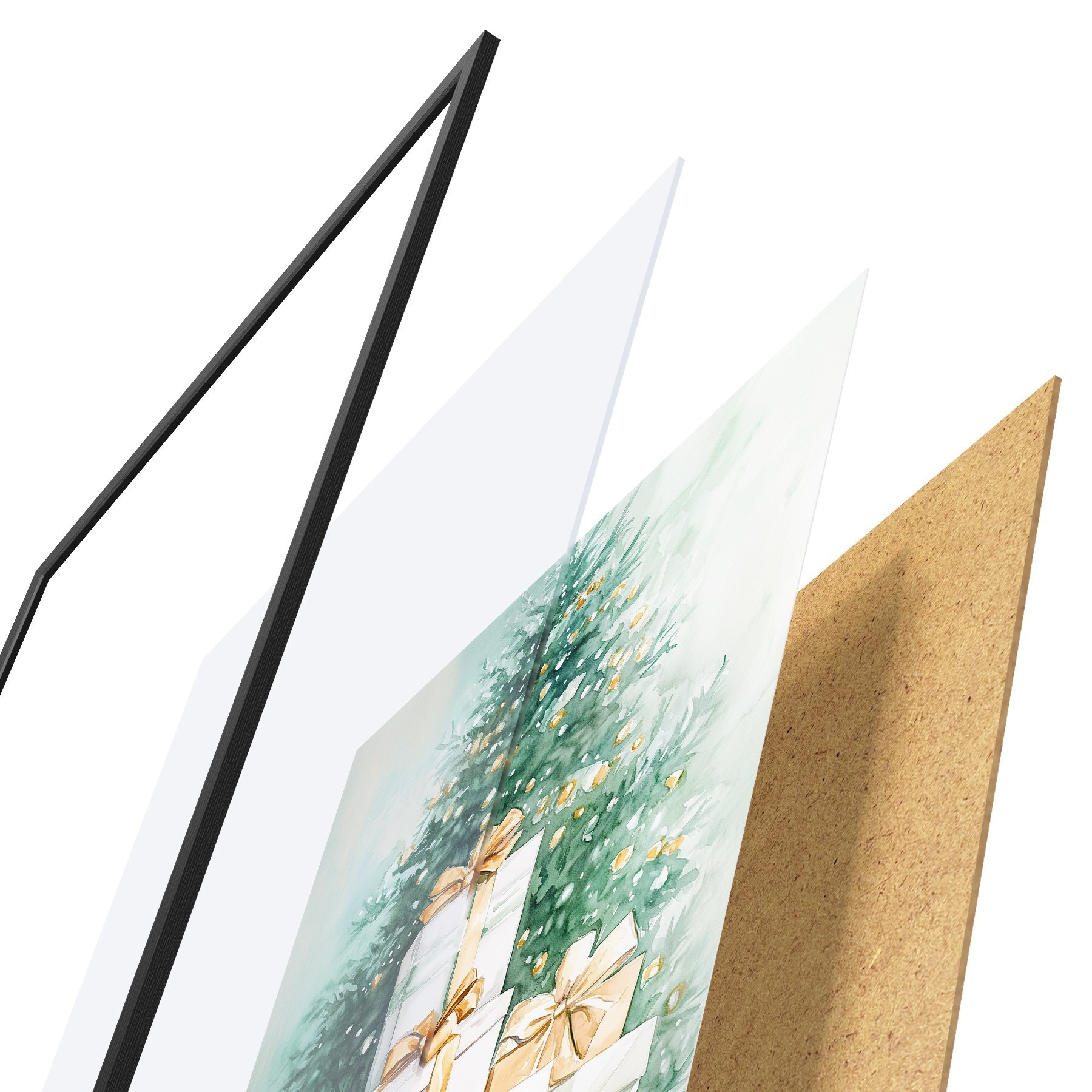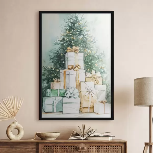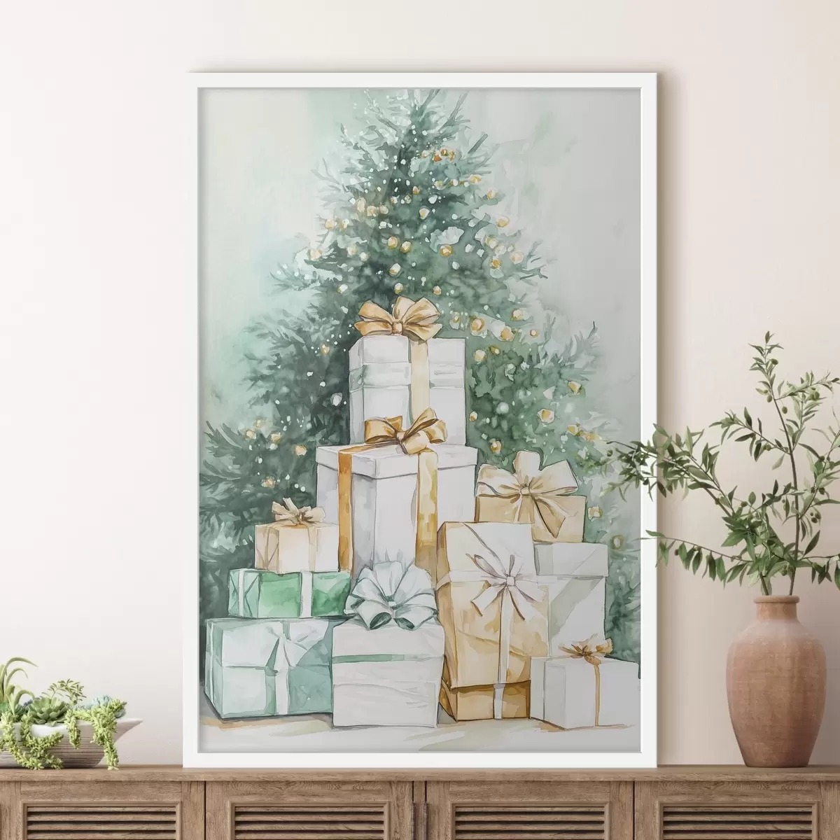 Plakatas Kalėdų eglutė su supakuotomis dovanomis, akvarelės stilius, šventinis f41944