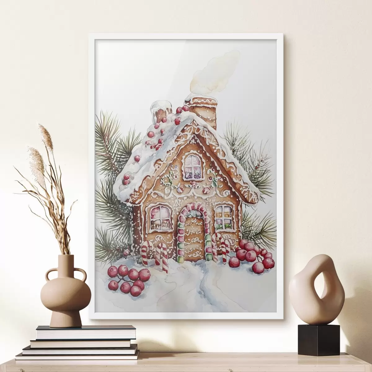 Plakatas Imbierinis namelis, pušies šakos, raudonos uogos, Kalėdos Ne f41946