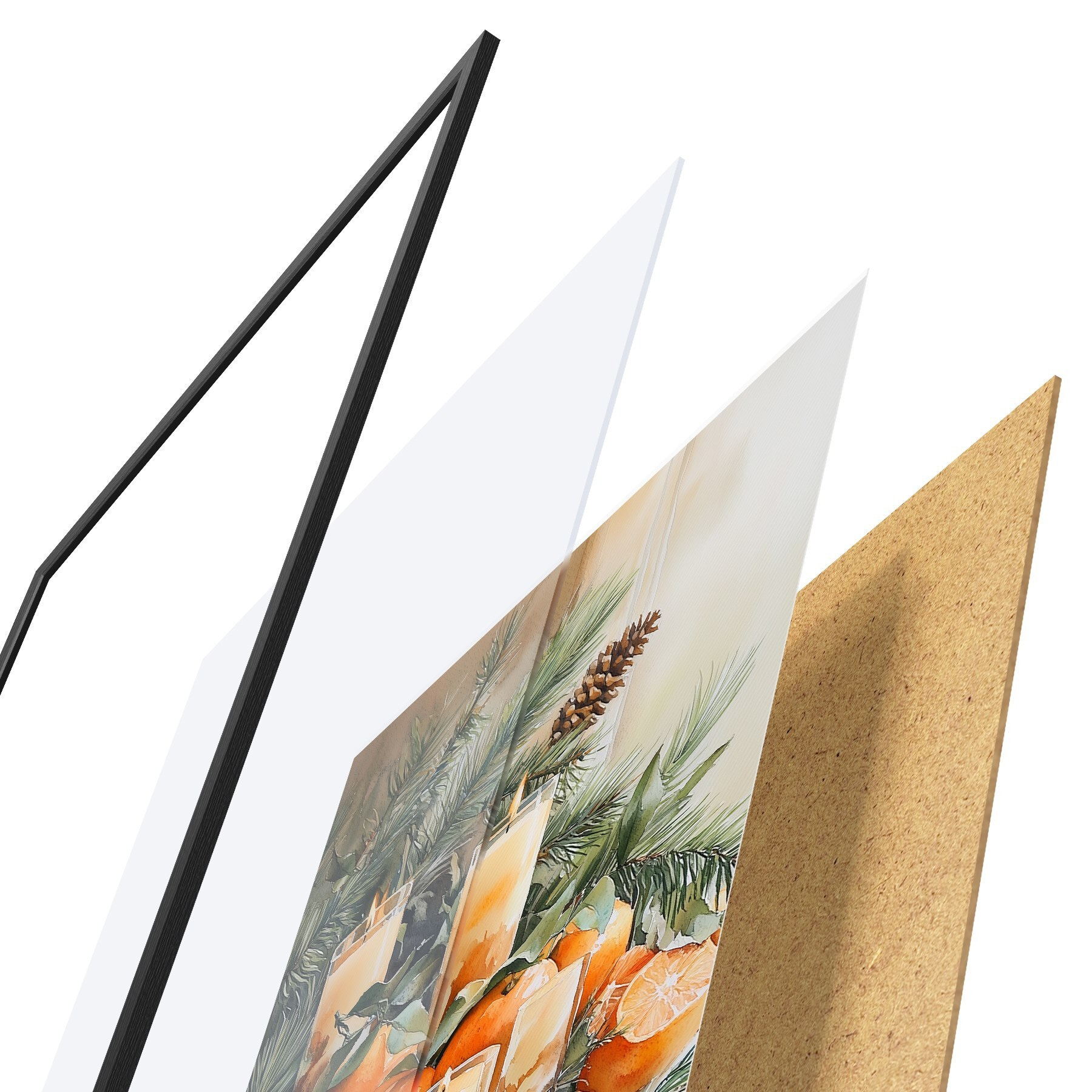 Plakatą sudaro rėmas, pleksiklas, atspausdintas vaizdas ir medžio drožlių plokštės pagrindas. Plakatą galima iš karto pakabinti ant sienos dėl kitoje pusėje esančių laikiklių.