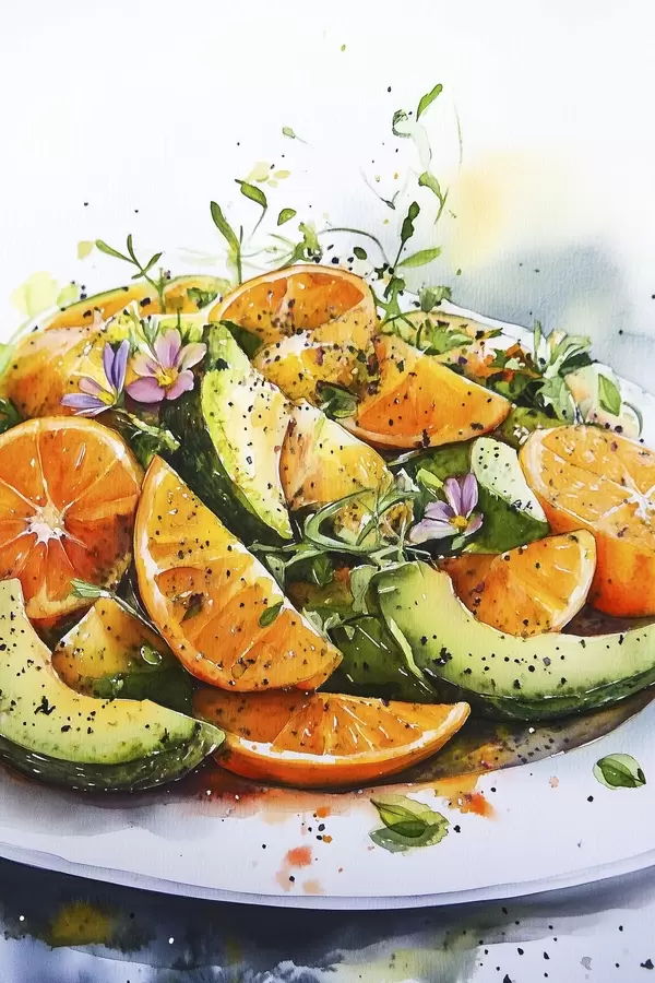 Plakatas Akvarelinio stiliaus salotos su moliūgais, apelsinais ir avokadais f41957