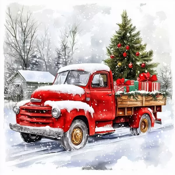 Plakatas Kalėdų automobilis su eglute ir dovanomis snieguotu oru Ne f41968