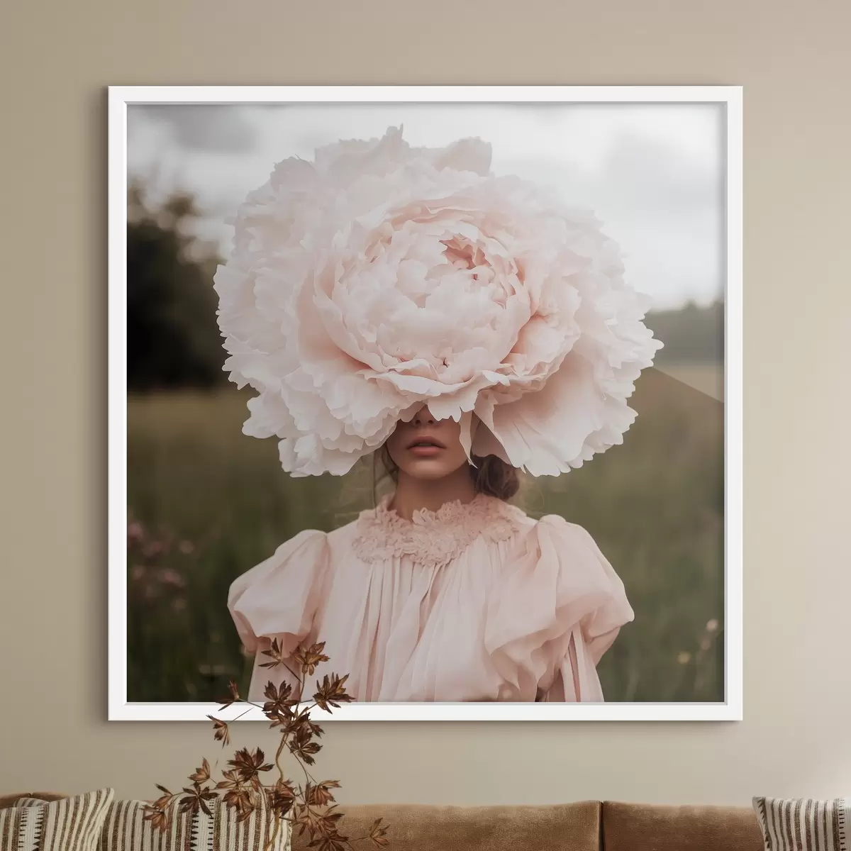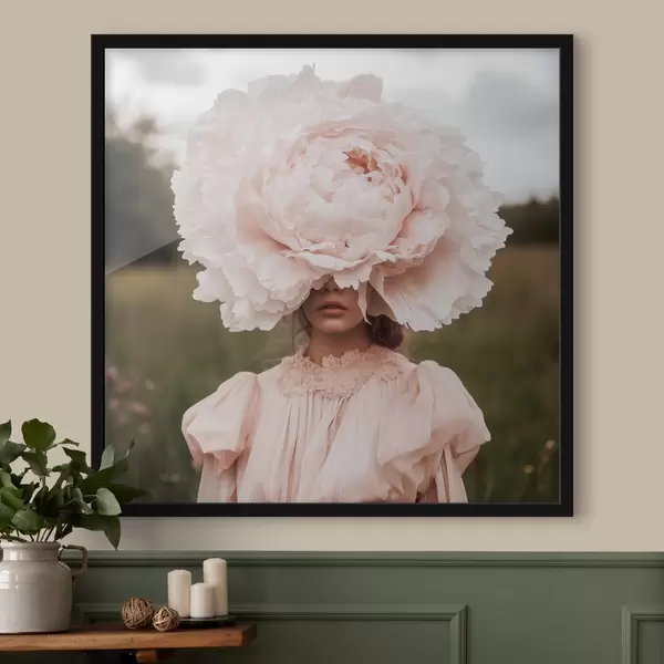 Plakatas Mergaitė su dideliu bijūnu ant galvos Ne f41969