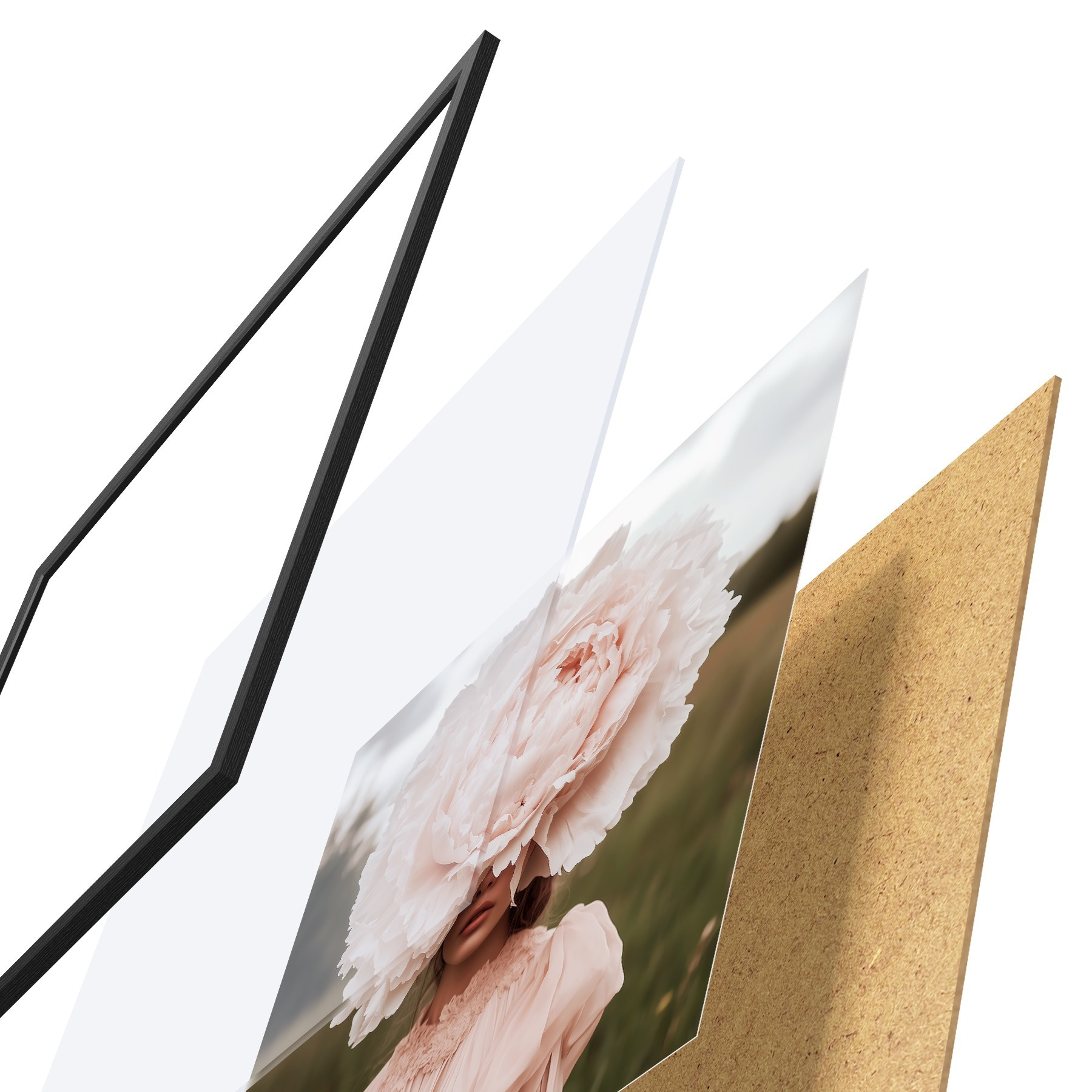 Plakatą sudaro rėmas, pleksiklas, atspausdintas vaizdas ir medžio drožlių plokštės pagrindas. Plakatą galima iš karto pakabinti ant sienos dėl kitoje pusėje esančių laikiklių.