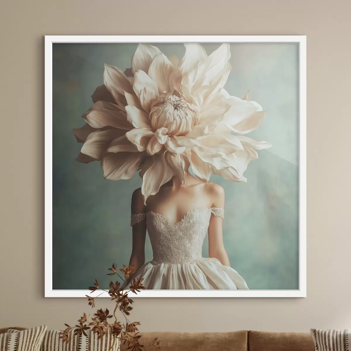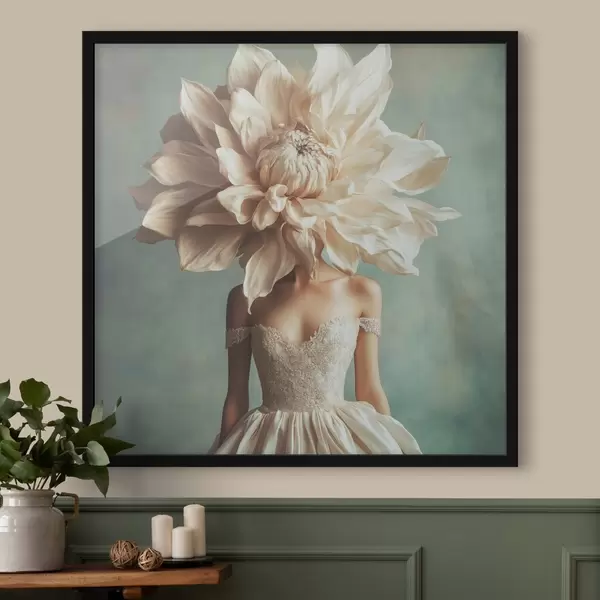 Plakatas Mergaitė su suknele ir chrizantema ant galvos f41973