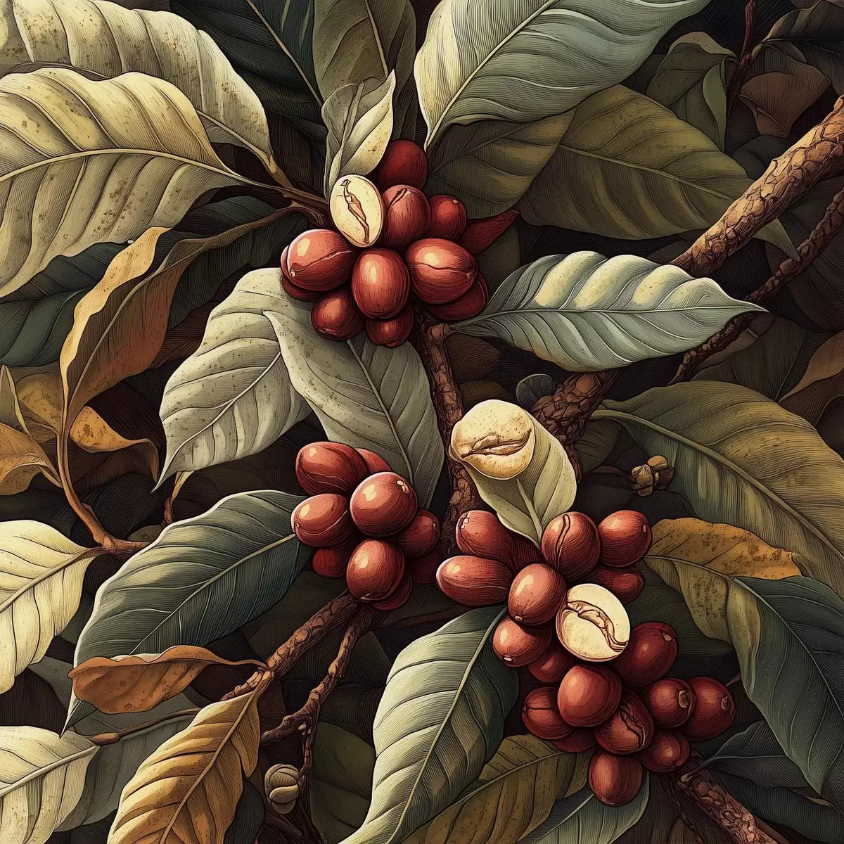 Plakatas Kavamedis su vaisiais ir lapais f41980