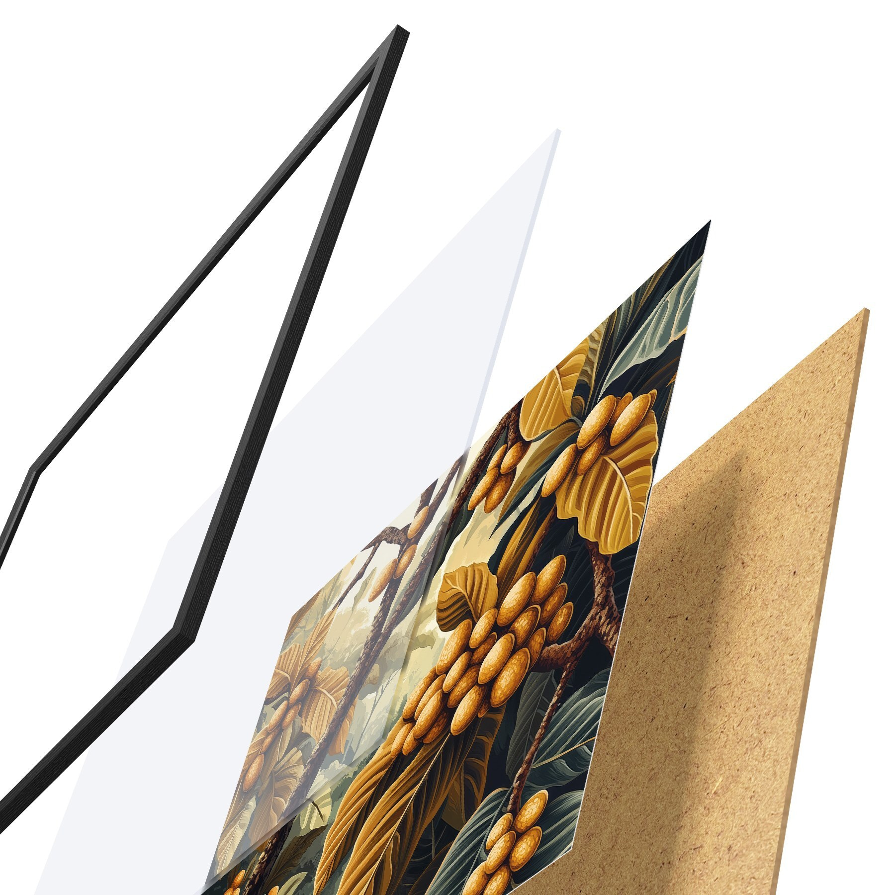 Plakatą sudaro rėmas, pleksiklas, atspausdintas vaizdas ir medžio drožlių plokštės pagrindas. Plakatą galima iš karto pakabinti ant sienos dėl kitoje pusėje esančių laikiklių.