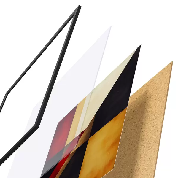 Plakatą sudaro rėmas, pleksiklas, atspausdintas vaizdas ir medžio drožlių plokštės pagrindas. Plakatą galima iš karto pakabinti ant sienos dėl kitoje pusėje esančių laikiklių.