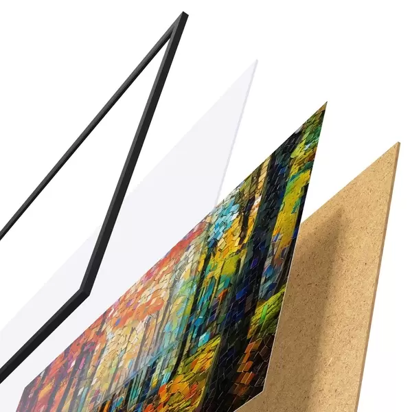 Plakatą sudaro rėmas, pleksiklas, atspausdintas vaizdas ir medžio drožlių plokštės pagrindas. Plakatą galima iš karto pakabinti ant sienos dėl kitoje pusėje esančių laikiklių.