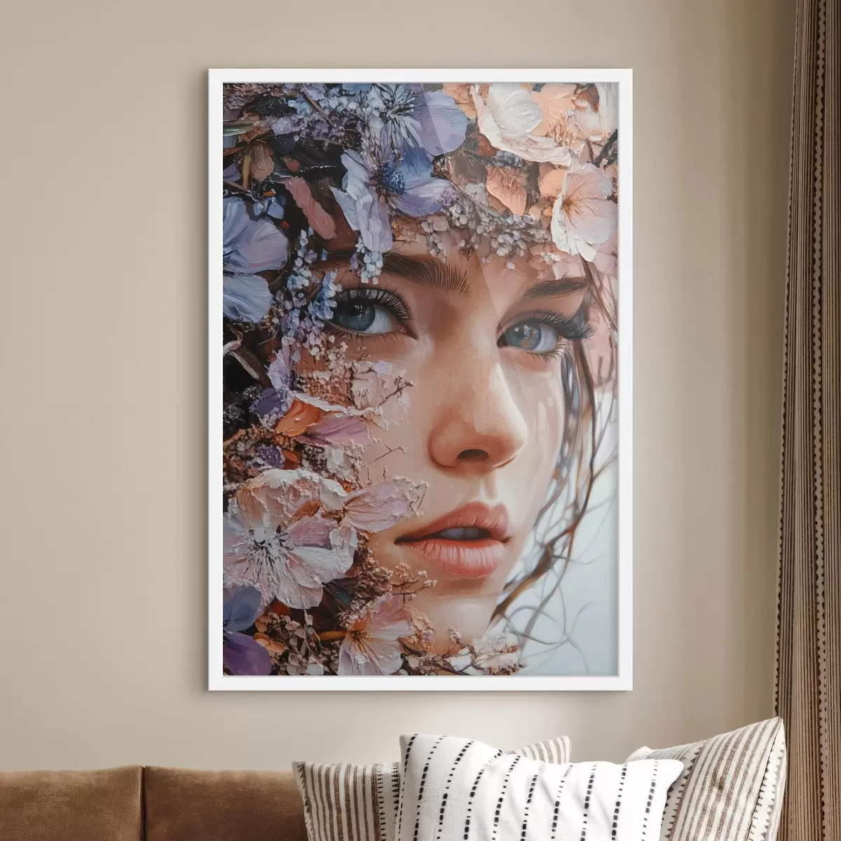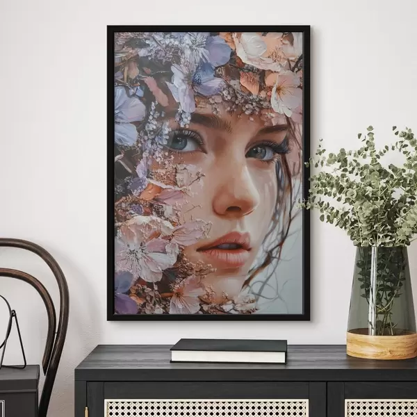 Plakatas mergaitės veidas su gėlėmis Ne f42001