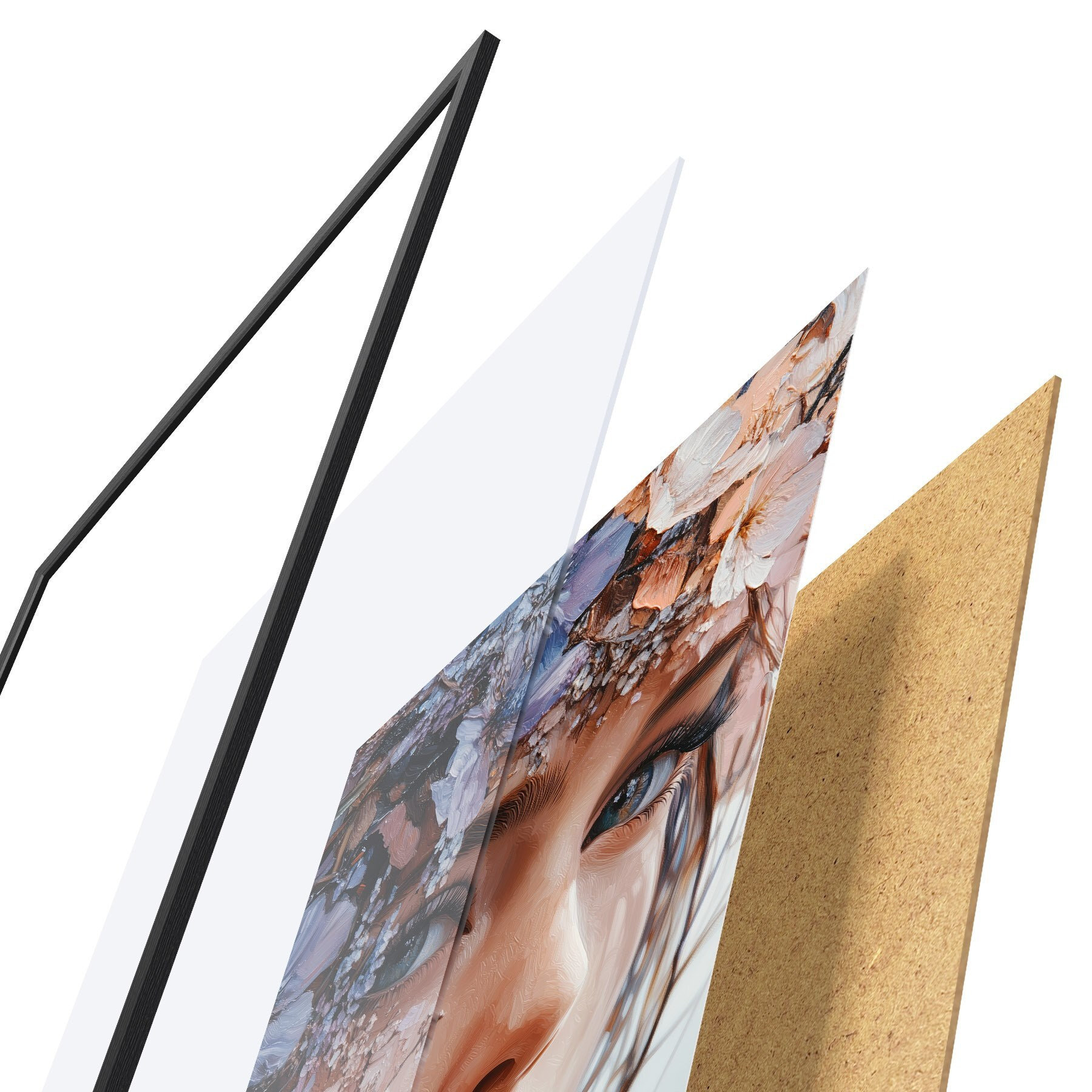 Plakatą sudaro rėmas, pleksiklas, atspausdintas vaizdas ir medžio drožlių plokštės pagrindas. Plakatą galima iš karto pakabinti ant sienos dėl kitoje pusėje esančių laikiklių.