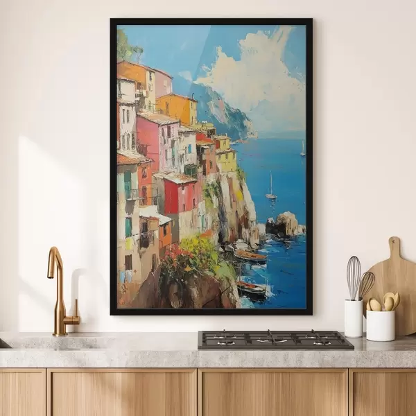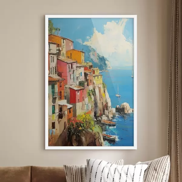 Plakatas Italijos miestas prie jūros aliejinių dažų stiliumi f42002