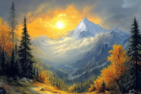 Plakatas saulė virš kalnų rudenį Ne f42006