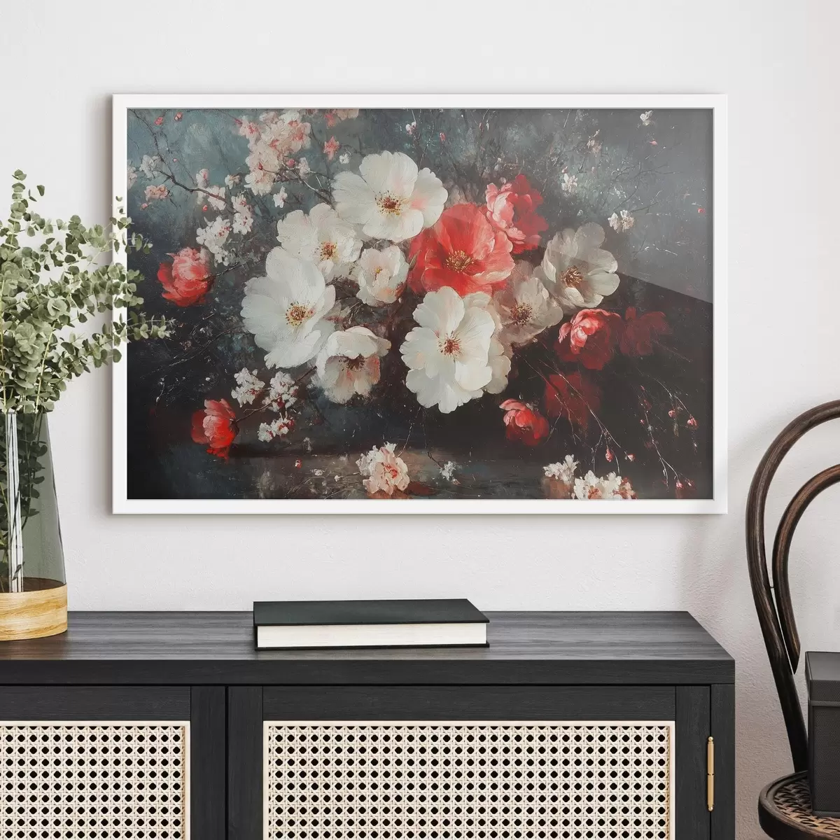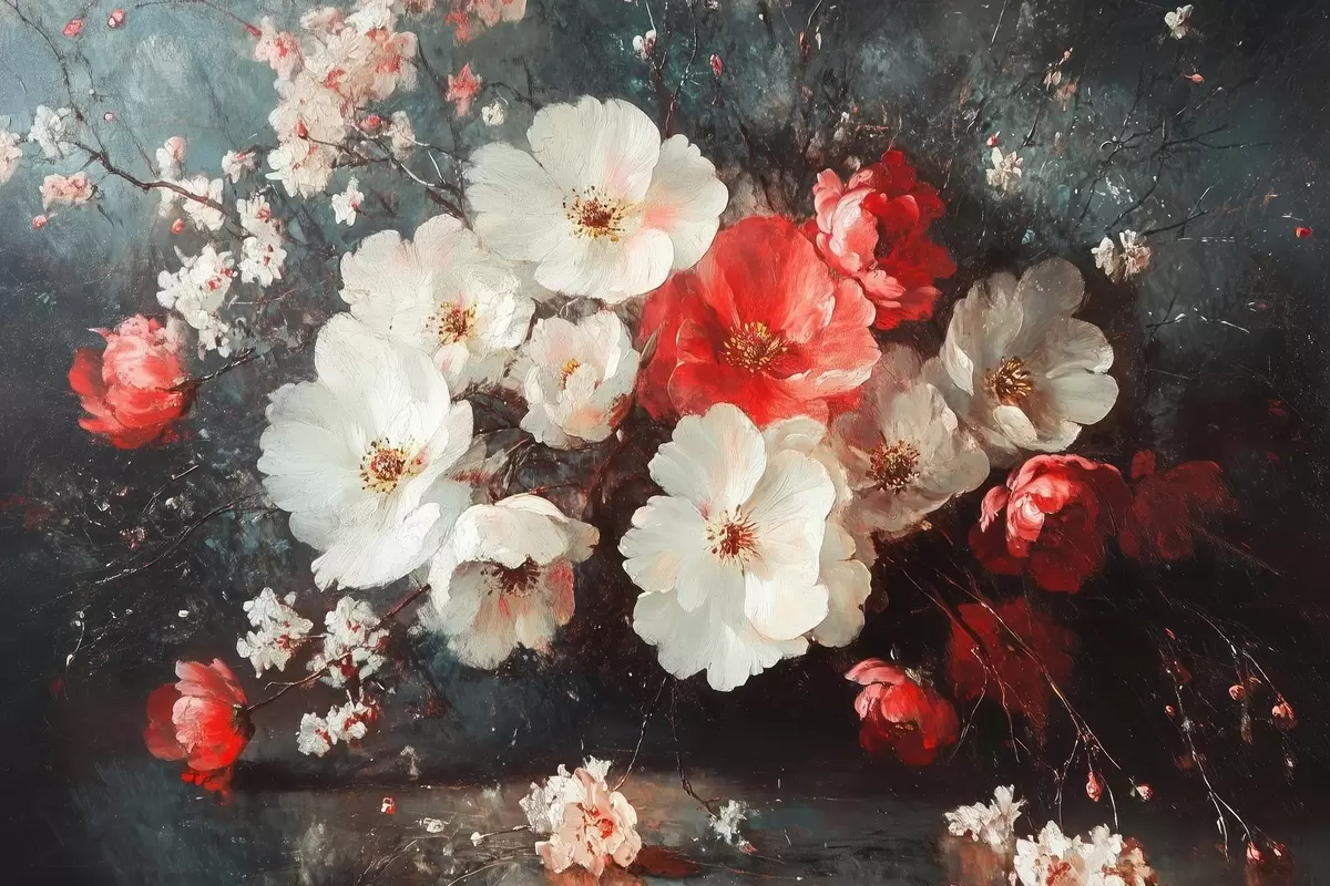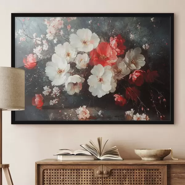 Plakatas baltos ir raudonos gėlės Ne f42007