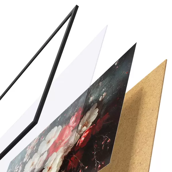 Plakatą sudaro rėmas, pleksiklas, atspausdintas vaizdas ir medžio drožlių plokštės pagrindas. Plakatą galima iš karto pakabinti ant sienos dėl kitoje pusėje esančių laikiklių.