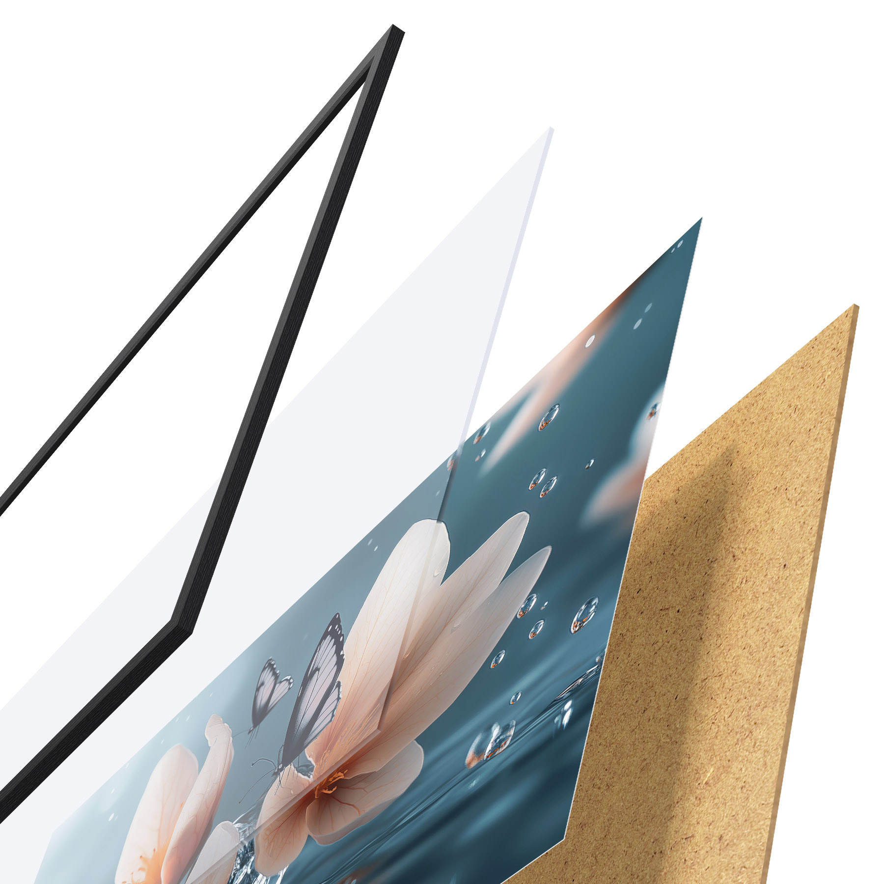Plakatą sudaro rėmas, pleksiklas, atspausdintas vaizdas ir medžio drožlių plokštės pagrindas. Plakatą galima iš karto pakabinti ant sienos dėl kitoje pusėje esančių laikiklių.