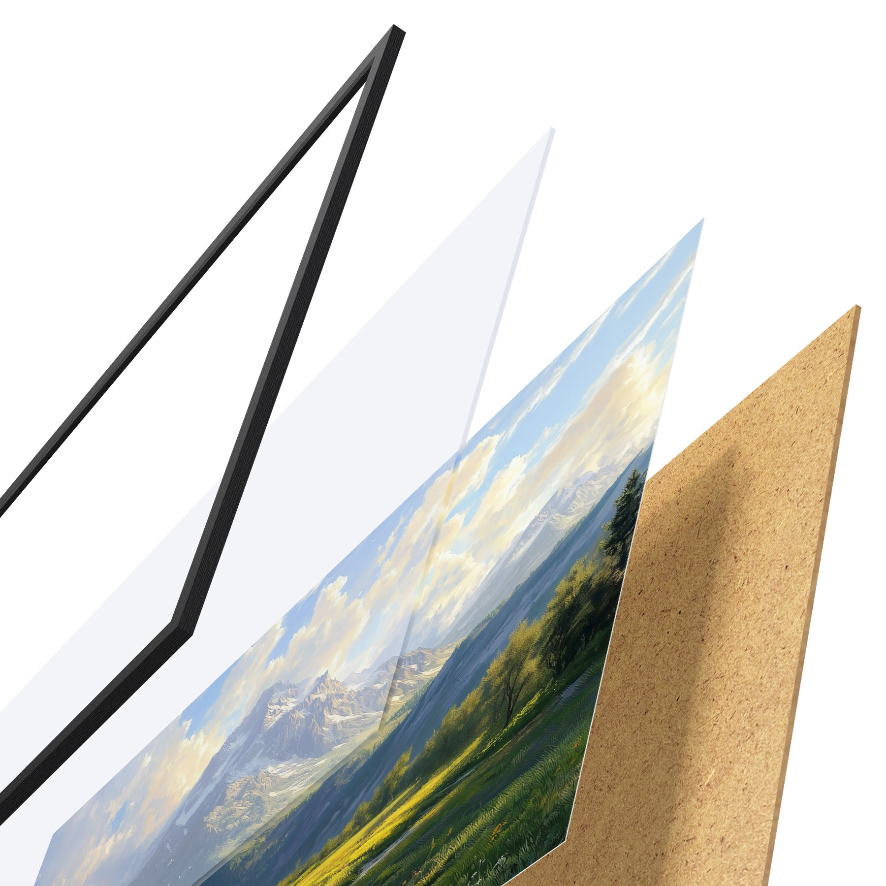 Plakatą sudaro rėmas, pleksiklas, atspausdintas vaizdas ir medžio drožlių plokštės pagrindas. Plakatą galima iš karto pakabinti ant sienos dėl kitoje pusėje esančių laikiklių.