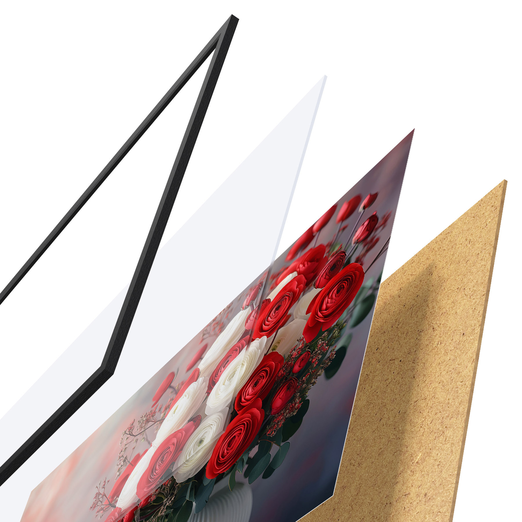 Plakatą sudaro rėmas, pleksiklas, atspausdintas vaizdas ir medžio drožlių plokštės pagrindas. Plakatą galima iš karto pakabinti ant sienos dėl kitoje pusėje esančių laikiklių.