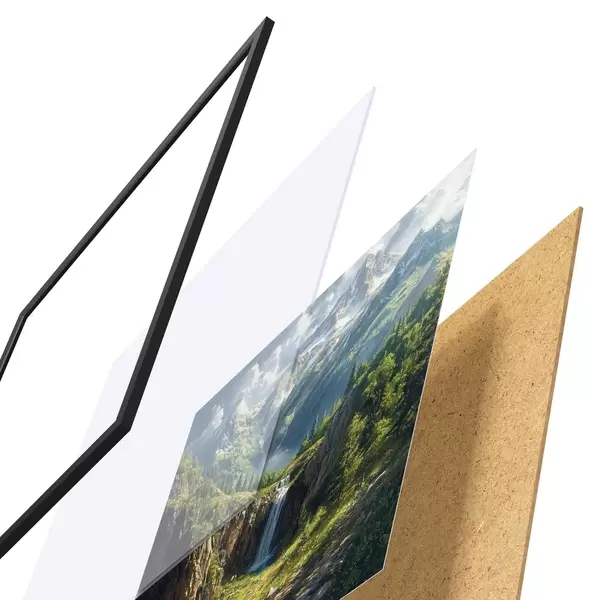 Plakatą sudaro rėmas, pleksiklas, atspausdintas vaizdas ir medžio drožlių plokštės pagrindas. Plakatą galima iš karto pakabinti ant sienos dėl kitoje pusėje esančių laikiklių.
