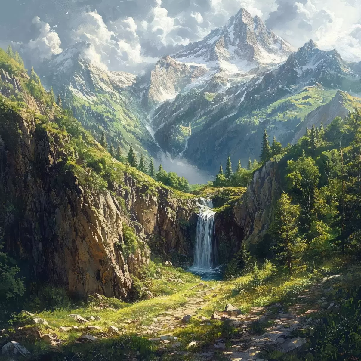 Plakatas kalnai ir krioklys f42020
