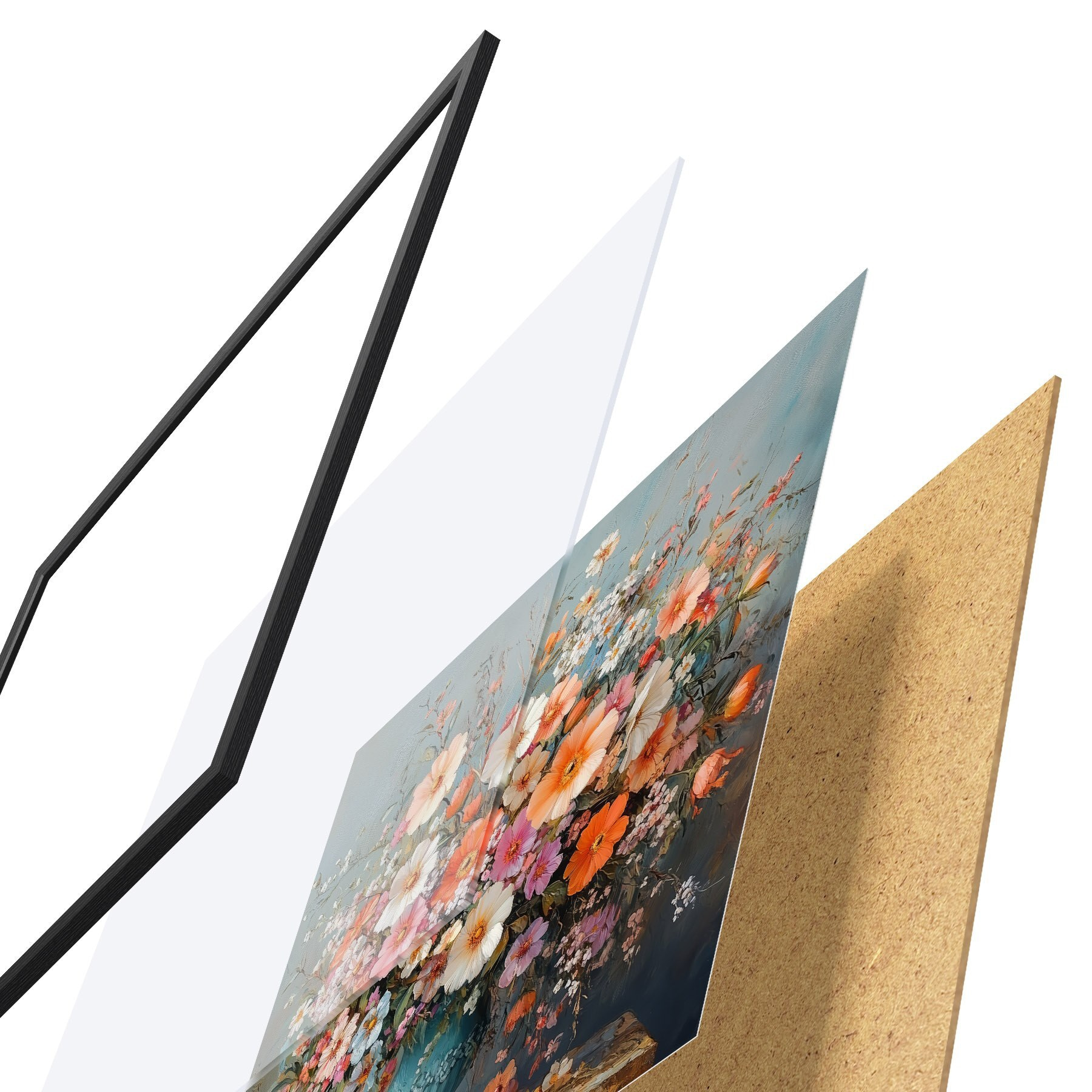 Plakatą sudaro rėmas, pleksiklas, atspausdintas vaizdas ir medžio drožlių plokštės pagrindas. Plakatą galima iš karto pakabinti ant sienos dėl kitoje pusėje esančių laikiklių.