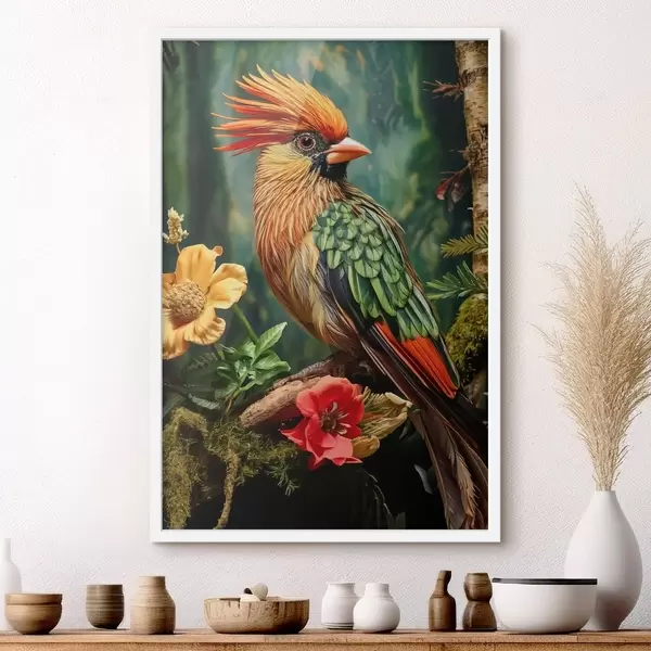 Plakatas ryškus paukštis ant šakos Ne f42028