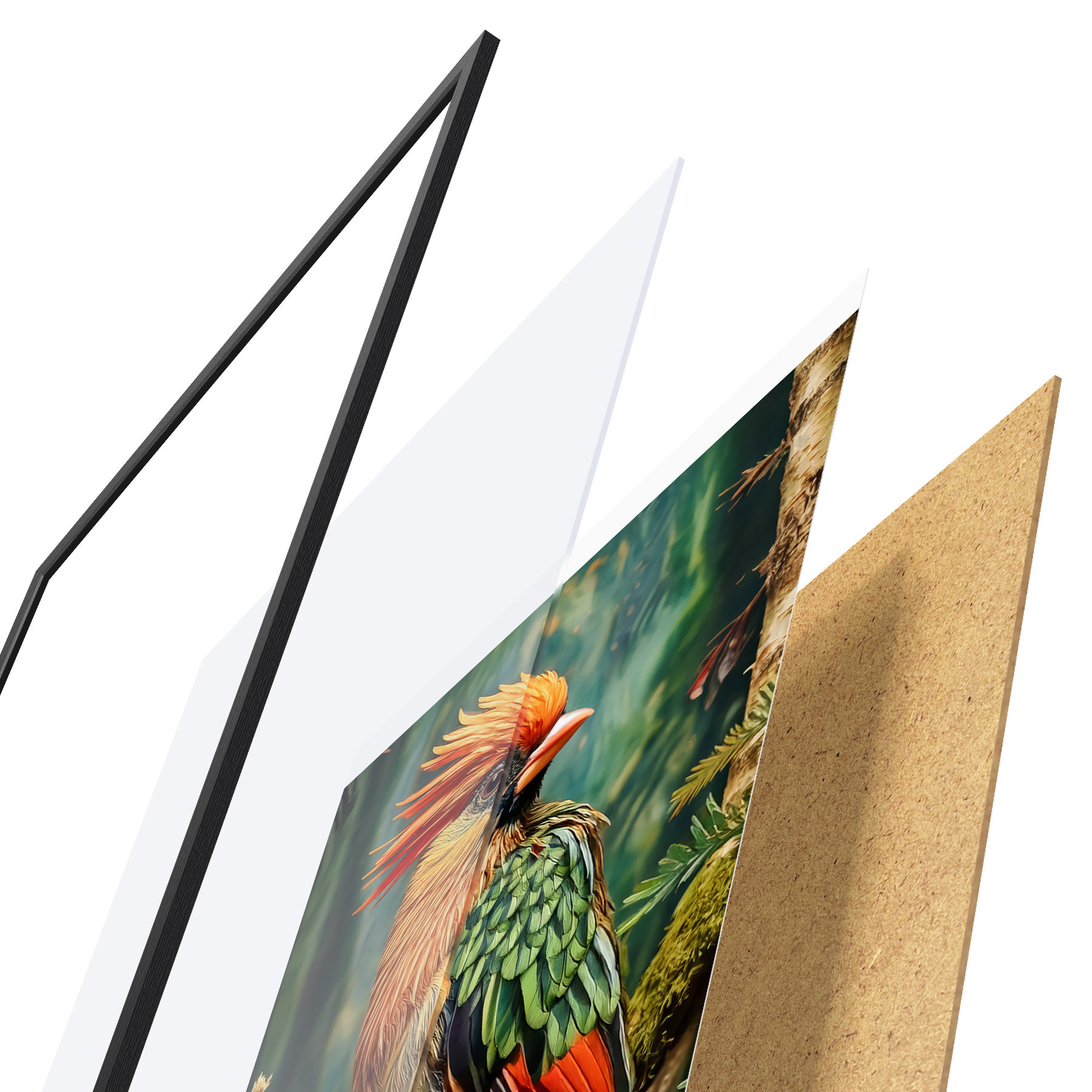 Plakatą sudaro rėmas, pleksiklas, atspausdintas vaizdas ir medžio drožlių plokštės pagrindas. Plakatą galima iš karto pakabinti ant sienos dėl kitoje pusėje esančių laikiklių.