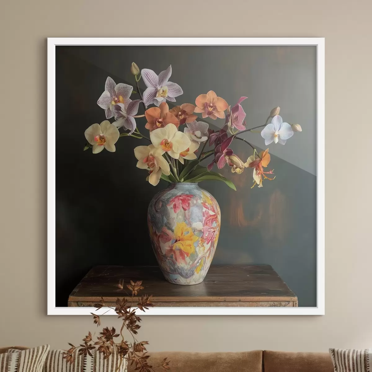 Plakatas Tapybos stiliaus vaza su orchidėjomis f42046