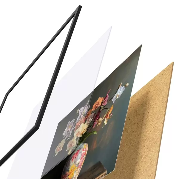 Plakatą sudaro rėmas, pleksiklas, atspausdintas vaizdas ir medžio drožlių plokštės pagrindas. Plakatą galima iš karto pakabinti ant sienos dėl kitoje pusėje esančių laikiklių.
