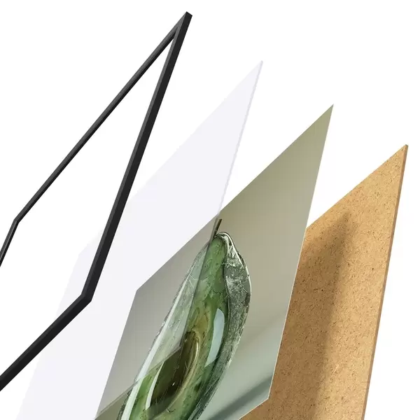 Plakatą sudaro rėmas, pleksiklas, atspausdintas vaizdas ir medžio drožlių plokštės pagrindas. Plakatą galima iš karto pakabinti ant sienos dėl kitoje pusėje esančių laikiklių.