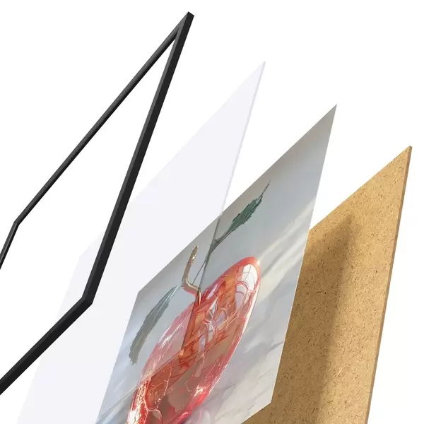 Plakatą sudaro rėmas, pleksiklas, atspausdintas vaizdas ir medžio drožlių plokštės pagrindas. Plakatą galima iš karto pakabinti ant sienos dėl kitoje pusėje esančių laikiklių.