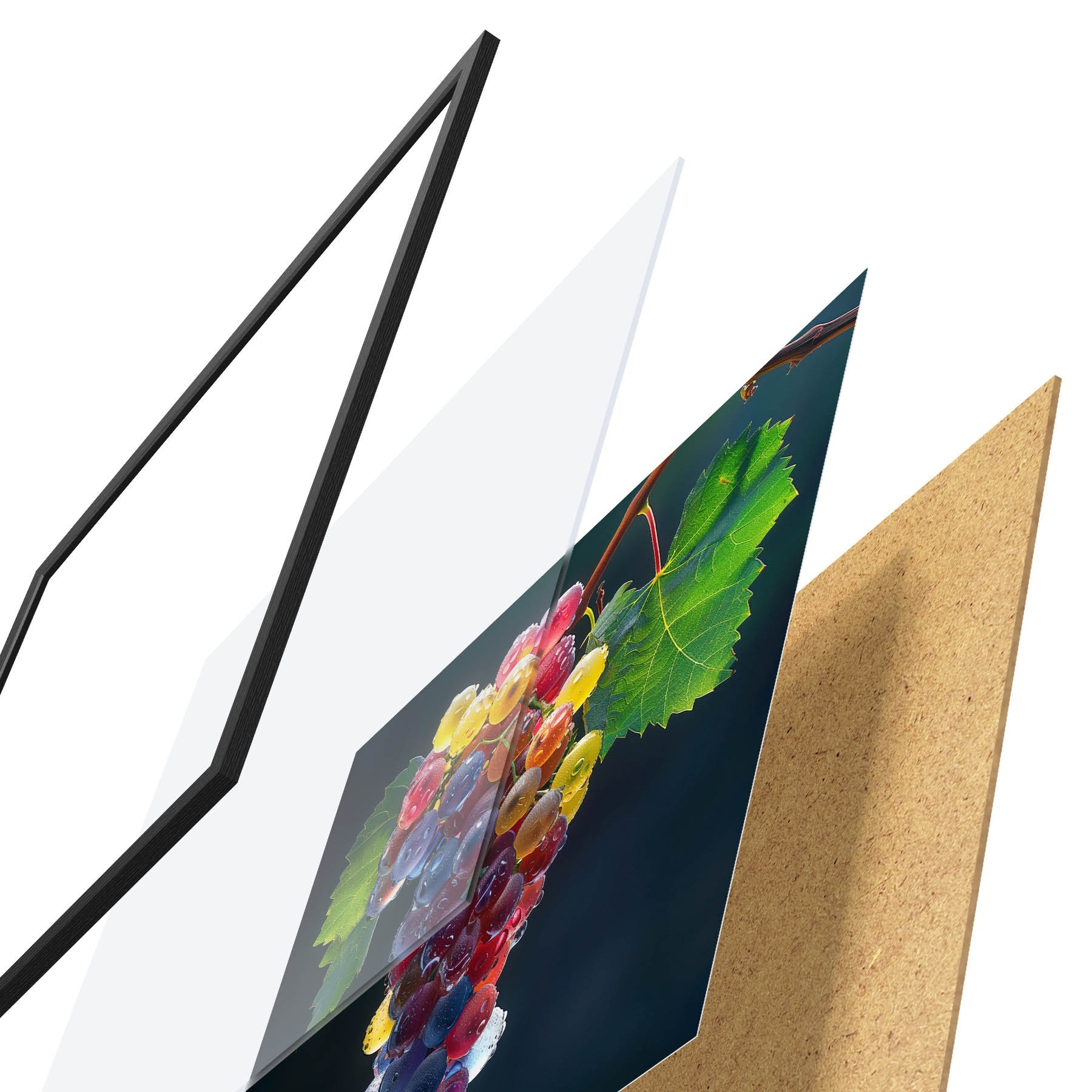Plakatą sudaro rėmas, pleksiklas, atspausdintas vaizdas ir medžio drožlių plokštės pagrindas. Plakatą galima iš karto pakabinti ant sienos dėl kitoje pusėje esančių laikiklių.