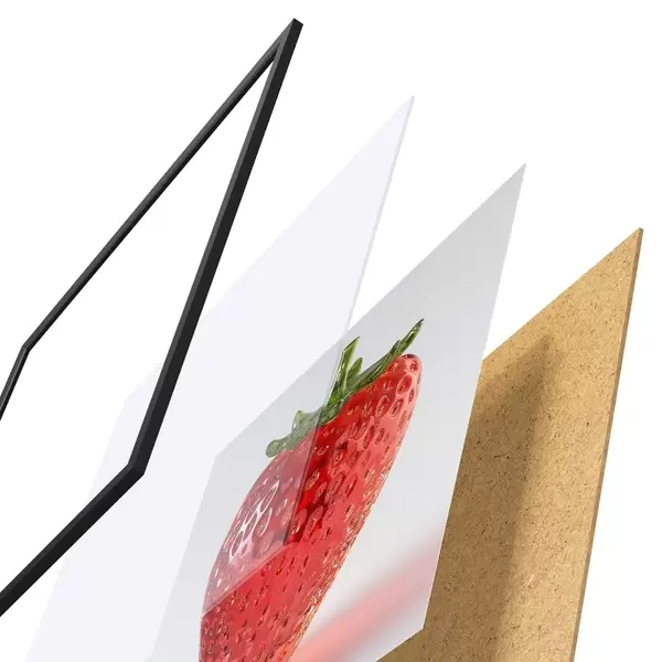 Plakatą sudaro rėmas, pleksiklas, atspausdintas vaizdas ir medžio drožlių plokštės pagrindas. Plakatą galima iš karto pakabinti ant sienos dėl kitoje pusėje esančių laikiklių.