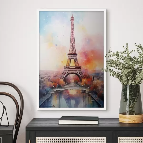 Plakatas Paryžius akvarelės purslų fone f42081