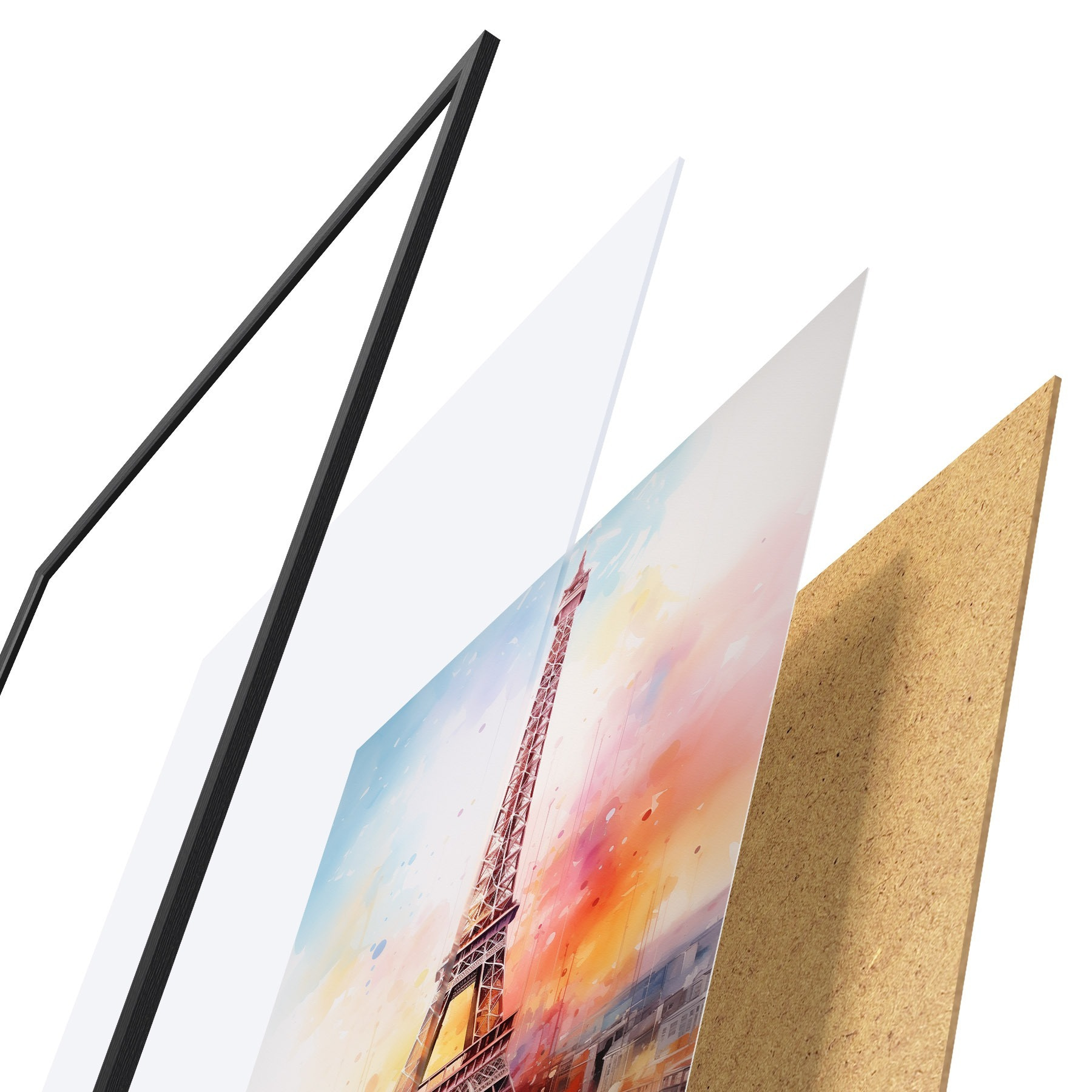 Plakatą sudaro rėmas, pleksiklas, atspausdintas vaizdas ir medžio drožlių plokštės pagrindas. Plakatą galima iš karto pakabinti ant sienos dėl kitoje pusėje esančių laikiklių.