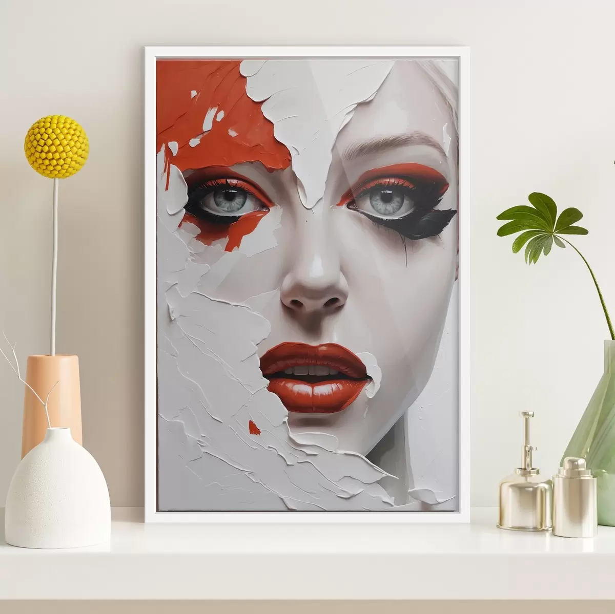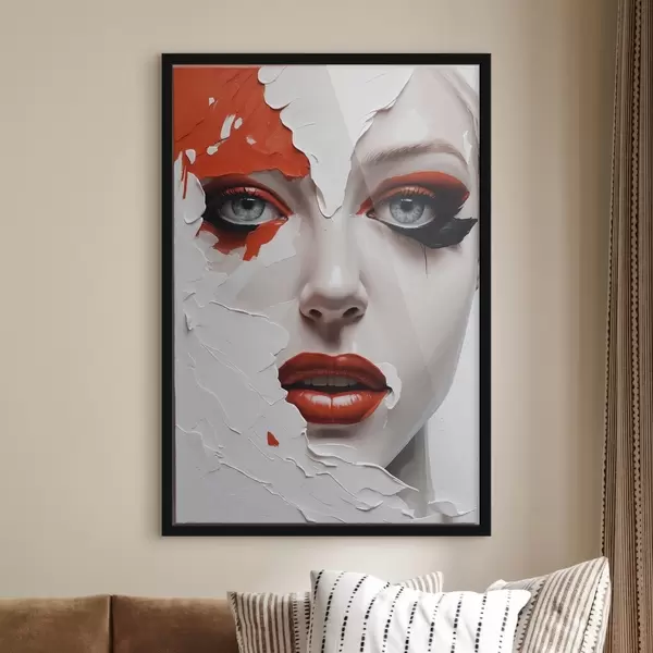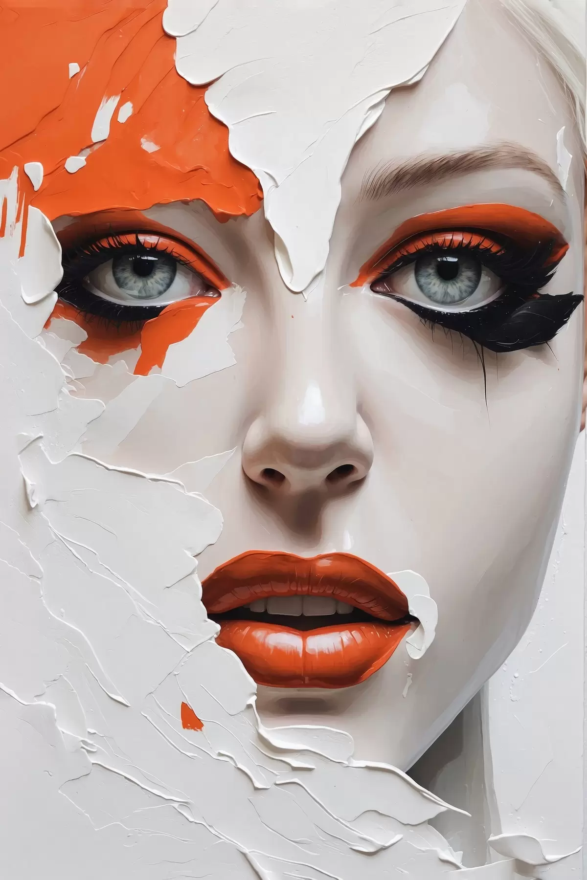 Plakatas Mergaitės veidas baltais ir oranžiniais dažais f42092
