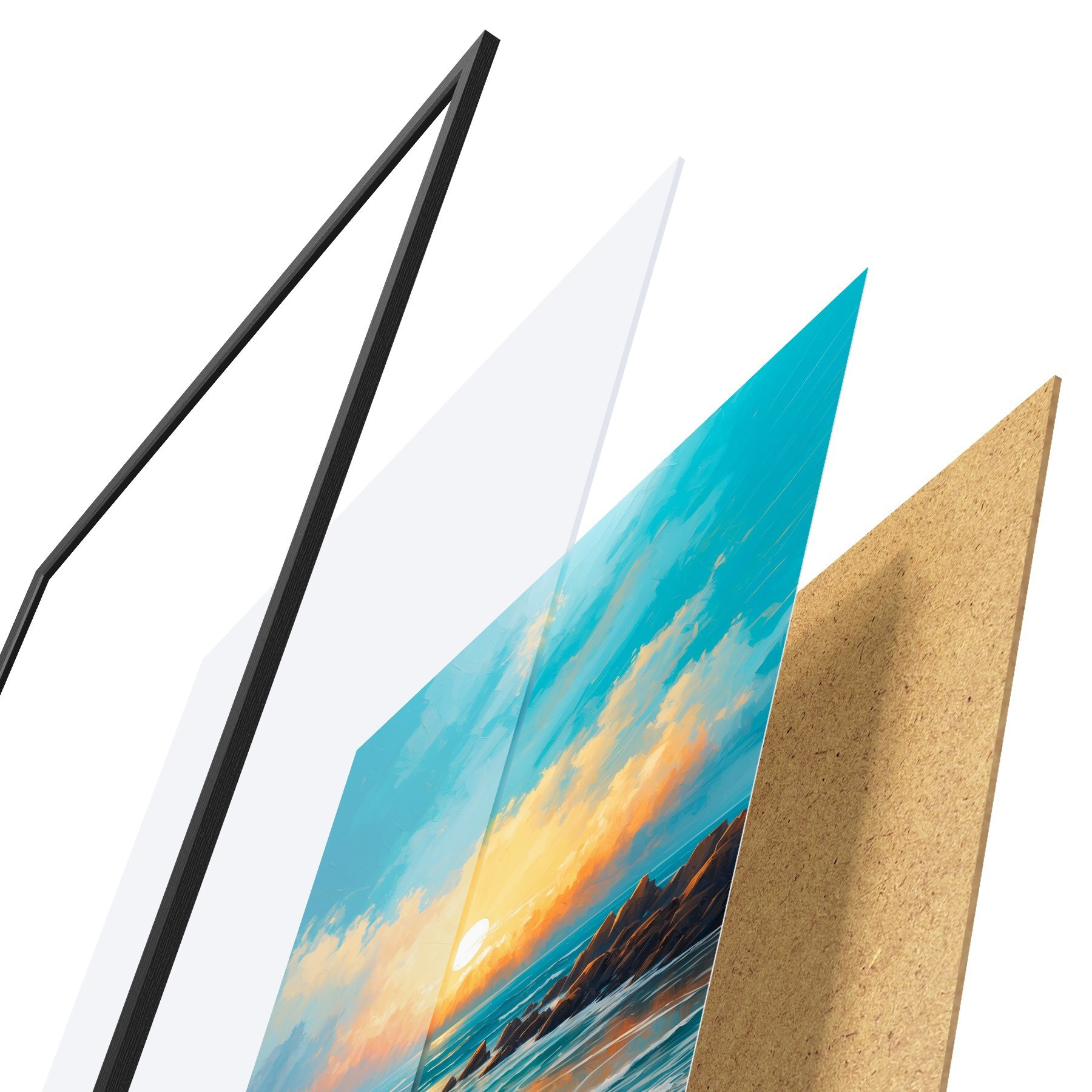 Plakatą sudaro rėmas, pleksiklas, atspausdintas vaizdas ir medžio drožlių plokštės pagrindas. Plakatą galima iš karto pakabinti ant sienos dėl kitoje pusėje esančių laikiklių.