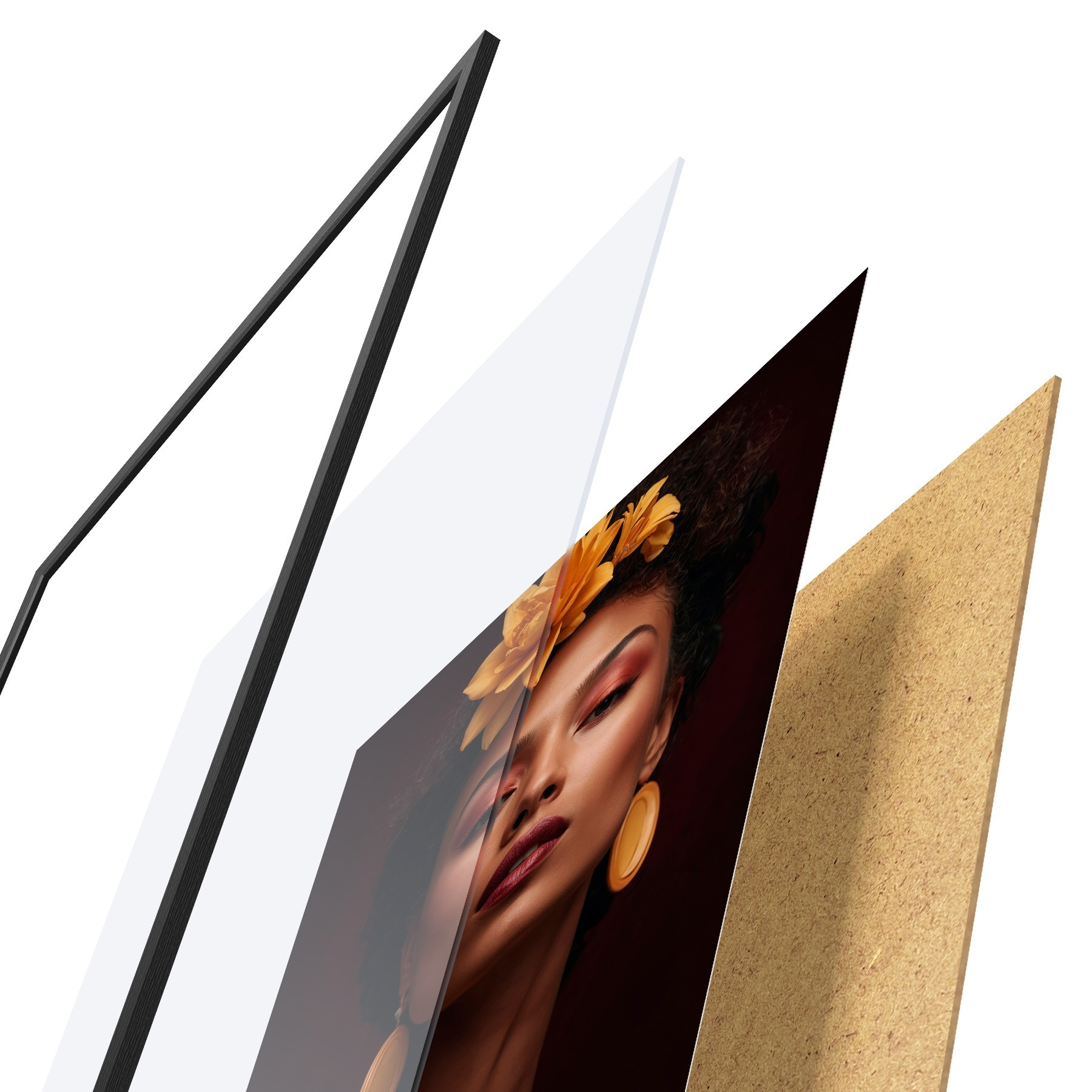 Plakatą sudaro rėmas, pleksiklas, atspausdintas vaizdas ir medžio drožlių plokštės pagrindas. Plakatą galima iš karto pakabinti ant sienos dėl kitoje pusėje esančių laikiklių.