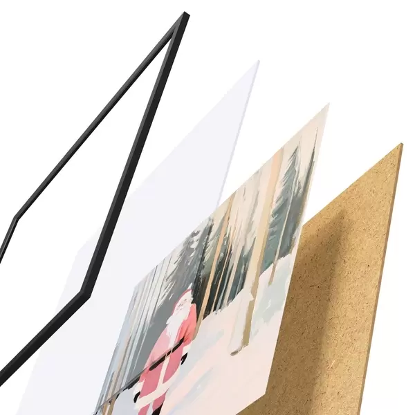 Plakatą sudaro rėmas, pleksiklas, atspausdintas vaizdas ir medžio drožlių plokštės pagrindas. Plakatą galima iš karto pakabinti ant sienos dėl kitoje pusėje esančių laikiklių.