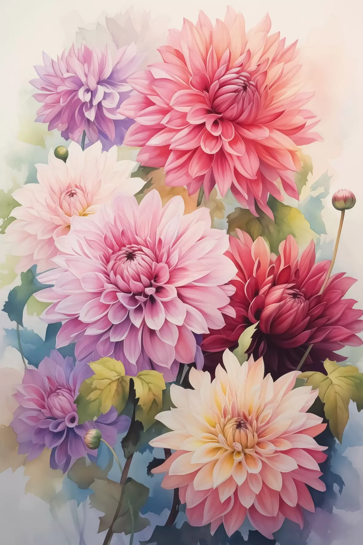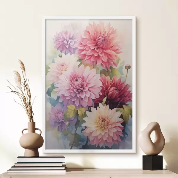 Plakatas Ryškios chrizantemos, imituojančios akvarelės stilių f42116