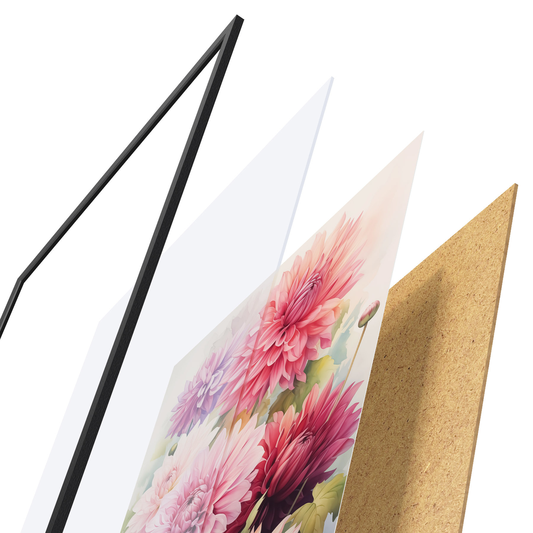 Plakatą sudaro rėmas, pleksiklas, atspausdintas vaizdas ir medžio drožlių plokštės pagrindas. Plakatą galima iš karto pakabinti ant sienos dėl kitoje pusėje esančių laikiklių.