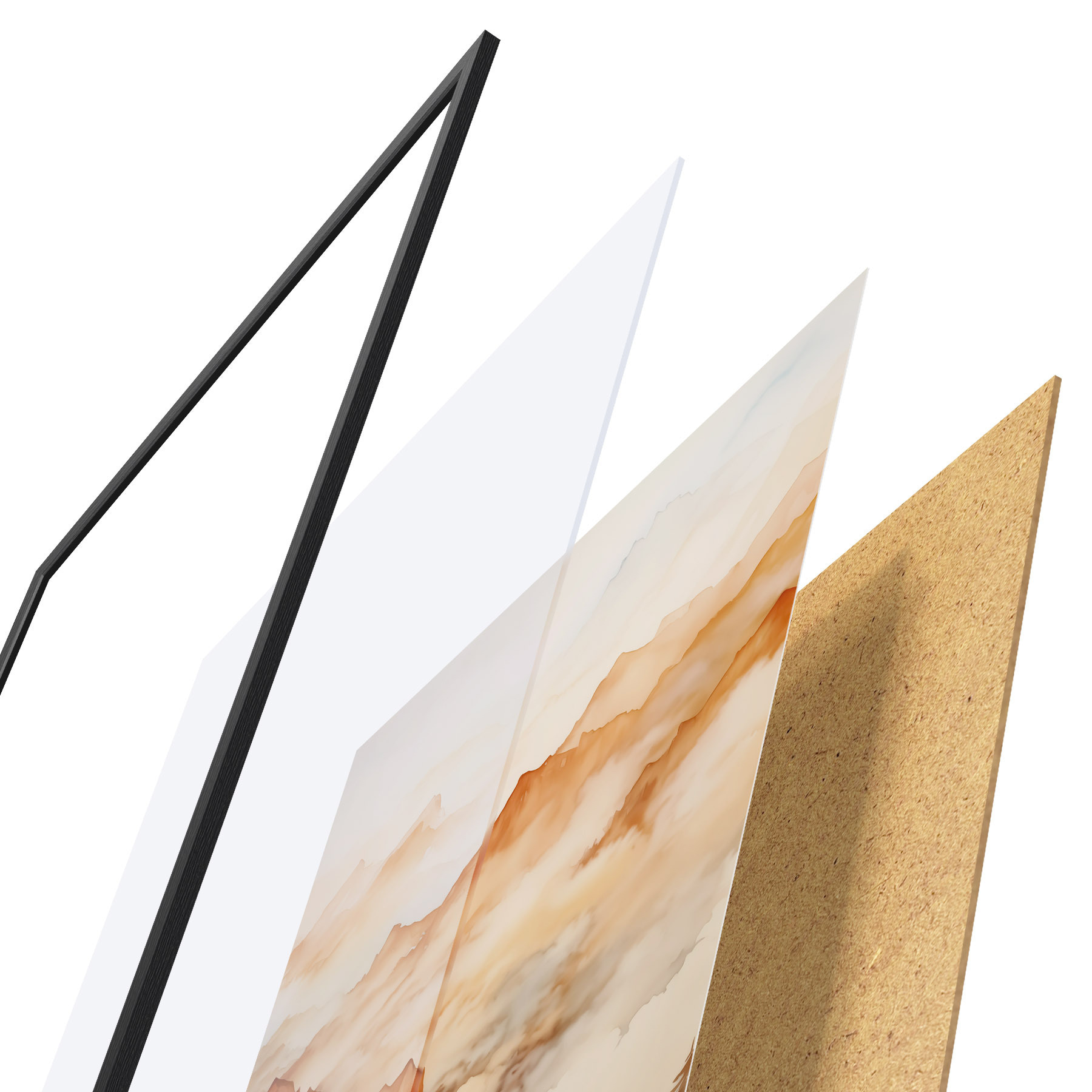 Plakatą sudaro rėmas, pleksiklas, atspausdintas vaizdas ir medžio drožlių plokštės pagrindas. Plakatą galima iš karto pakabinti ant sienos dėl kitoje pusėje esančių laikiklių.