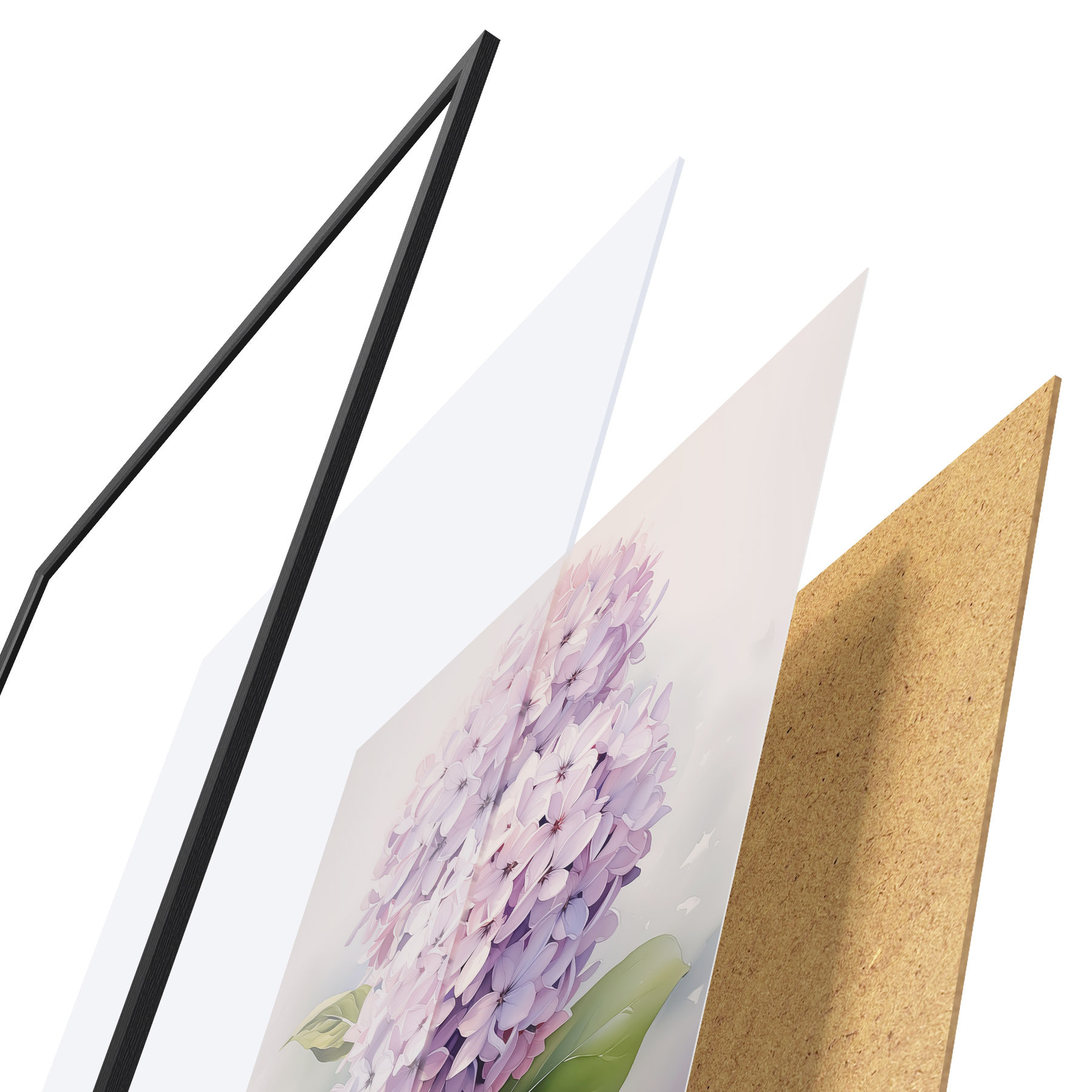 Plakatą sudaro rėmas, pleksiklas, atspausdintas vaizdas ir medžio drožlių plokštės pagrindas. Plakatą galima iš karto pakabinti ant sienos dėl kitoje pusėje esančių laikiklių.