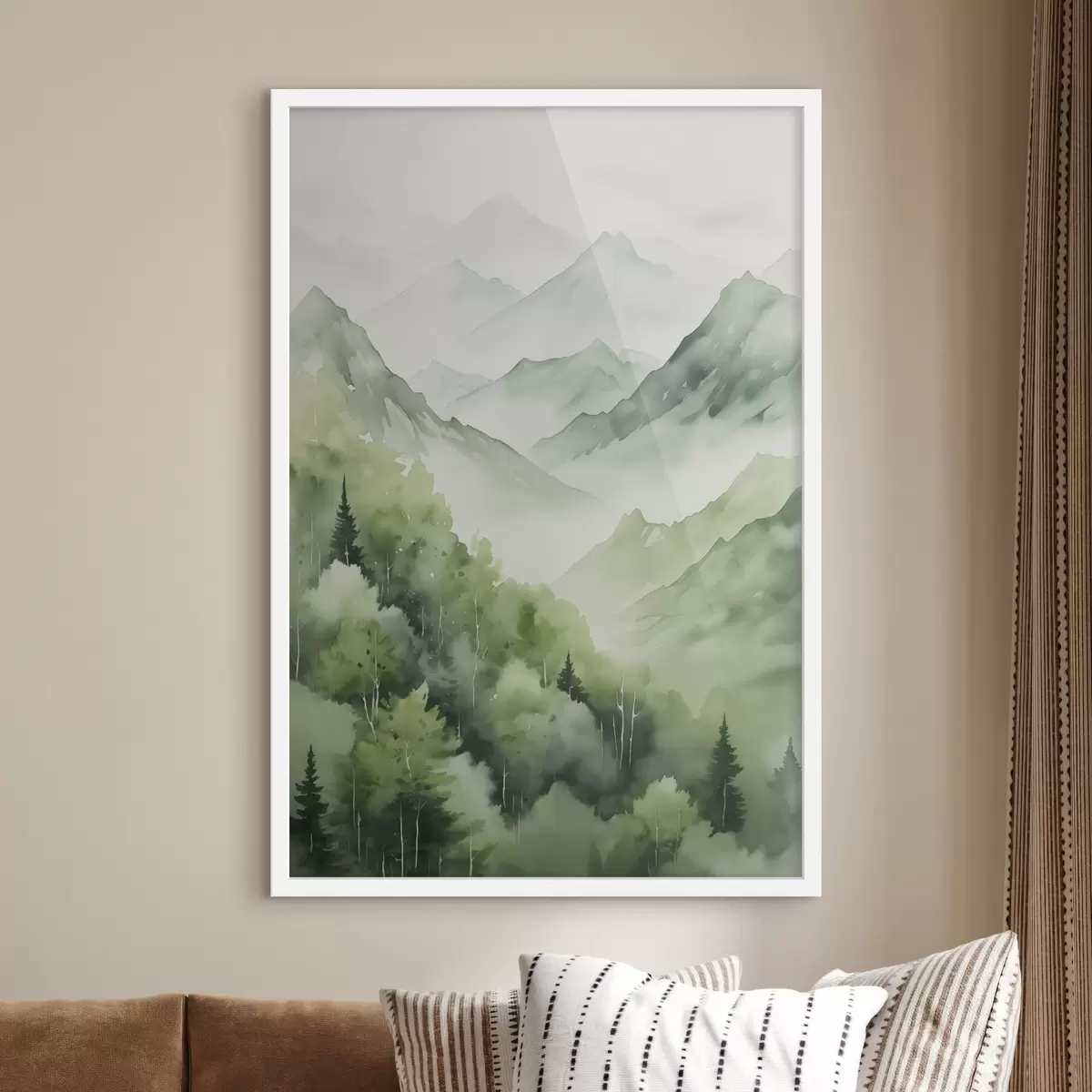 Plakatas Lapuočių miškas kalnuose, imituojantis akvarelę Ne f42122