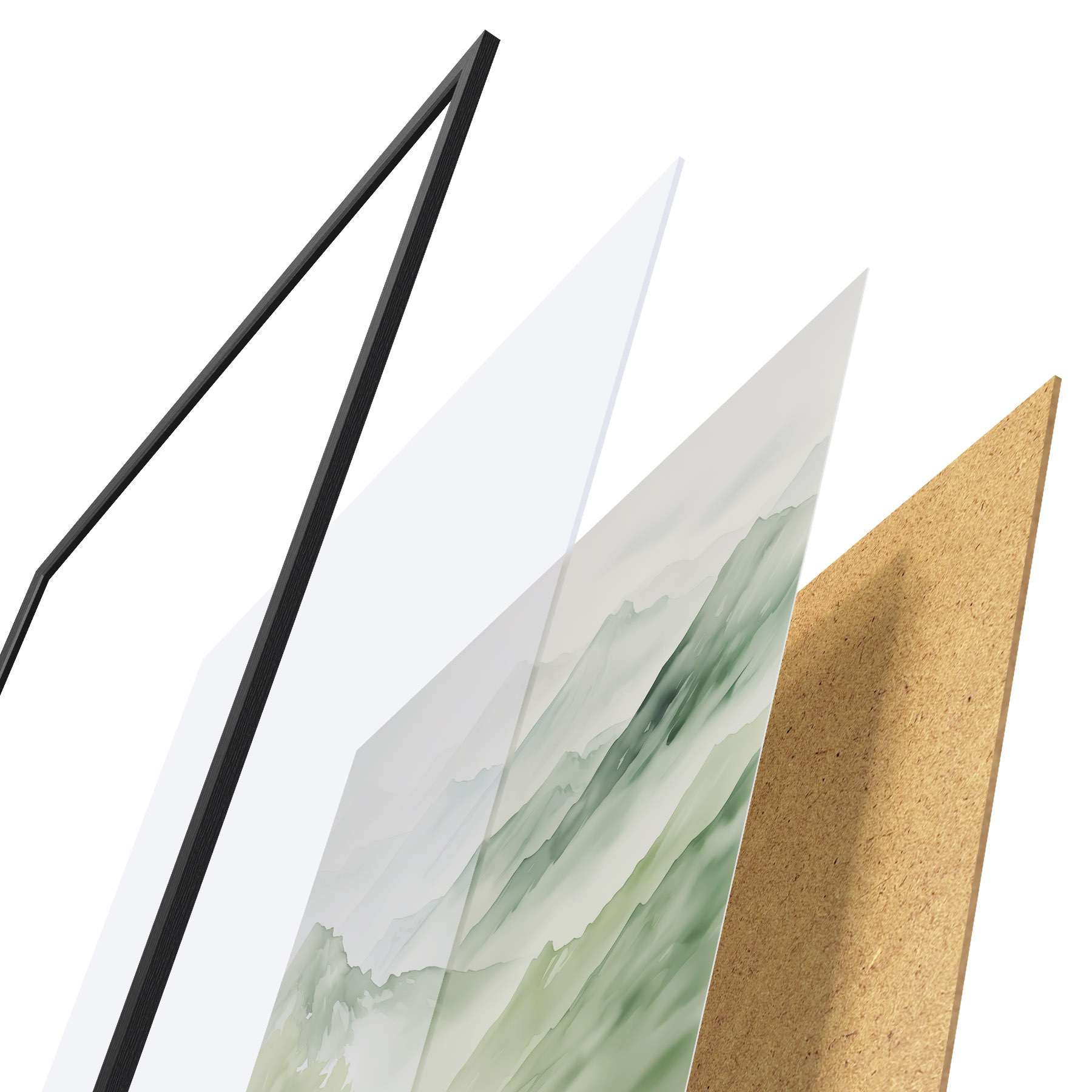 Plakatą sudaro rėmas, pleksiklas, atspausdintas vaizdas ir medžio drožlių plokštės pagrindas. Plakatą galima iš karto pakabinti ant sienos dėl kitoje pusėje esančių laikiklių.