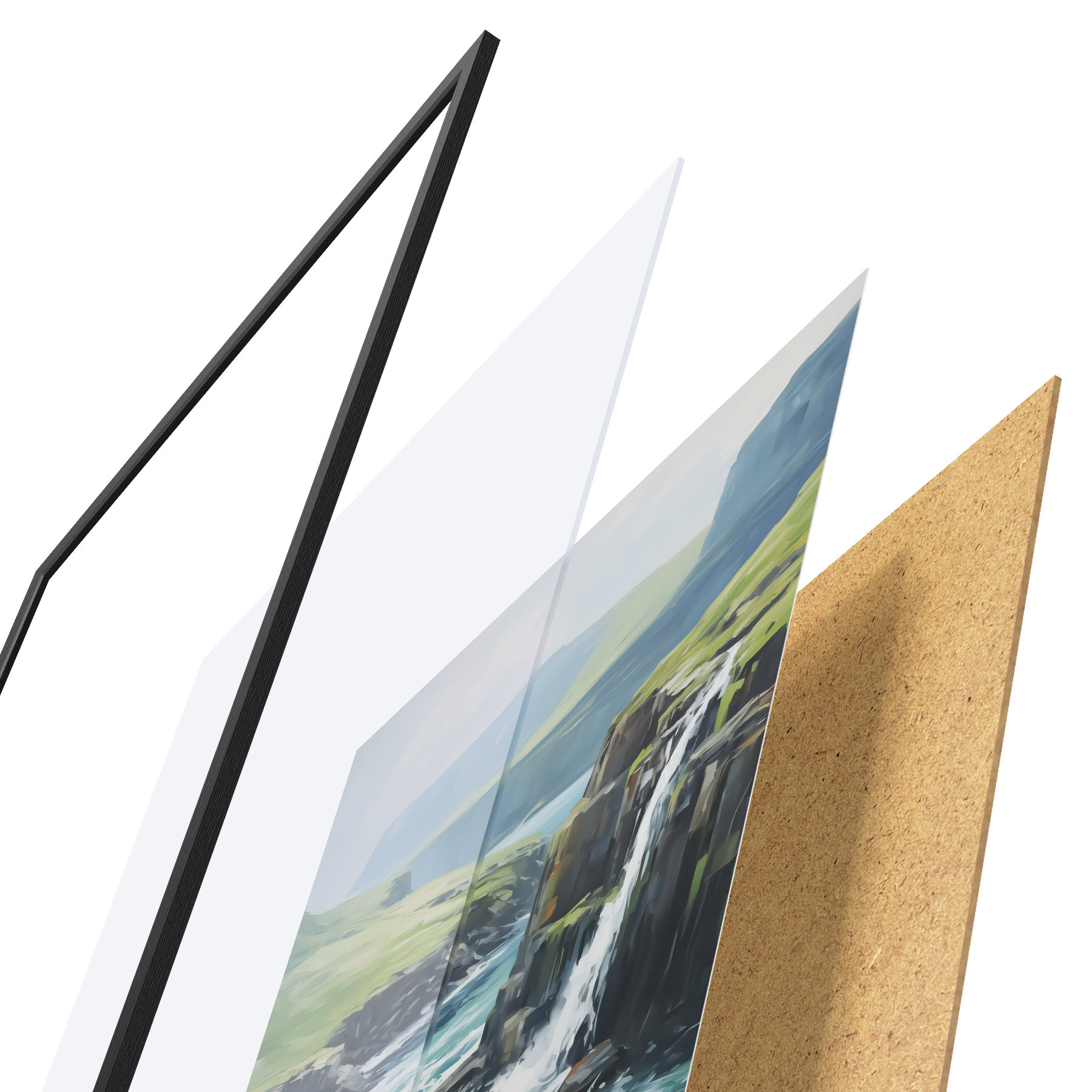 Plakatą sudaro rėmas, pleksiklas, atspausdintas vaizdas ir medžio drožlių plokštės pagrindas. Plakatą galima iš karto pakabinti ant sienos dėl kitoje pusėje esančių laikiklių.