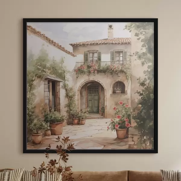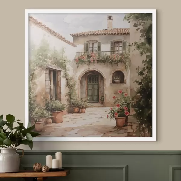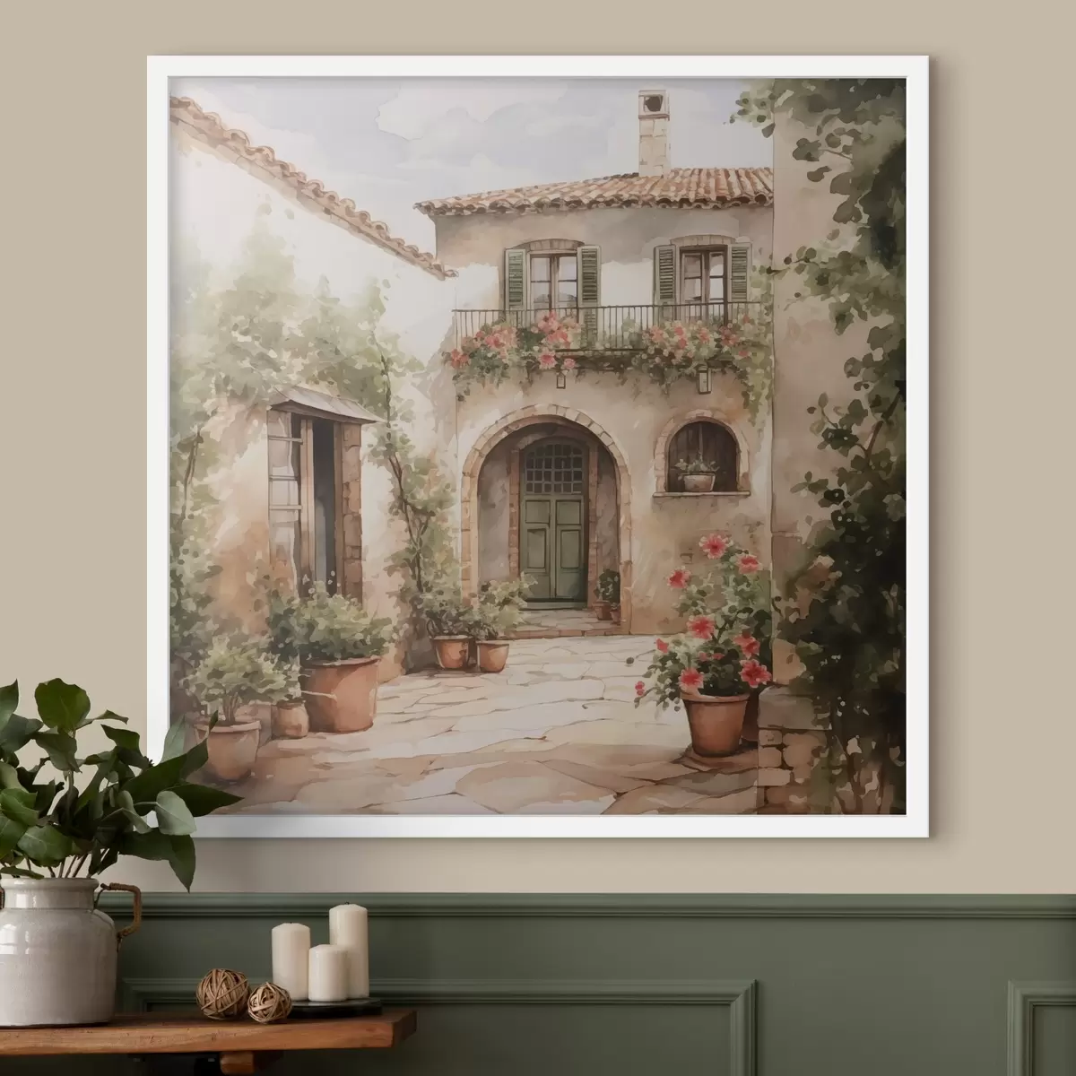 Plakatas Itališkas kiemas su akvarelės imitacijos vazonais f42126