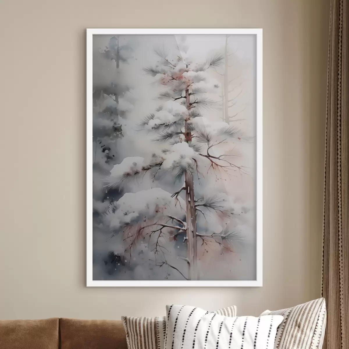 Plakatas Medis snieguotame miške, akvarelės imitacija Ne f42139