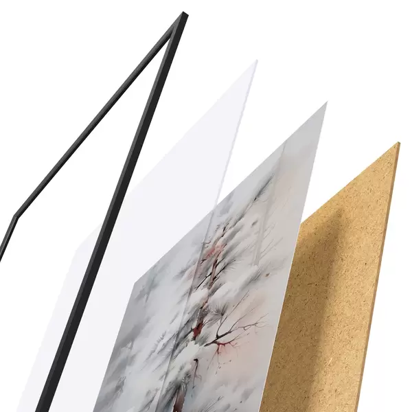 Plakatą sudaro rėmas, pleksiklas, atspausdintas vaizdas ir medžio drožlių plokštės pagrindas. Plakatą galima iš karto pakabinti ant sienos dėl kitoje pusėje esančių laikiklių.