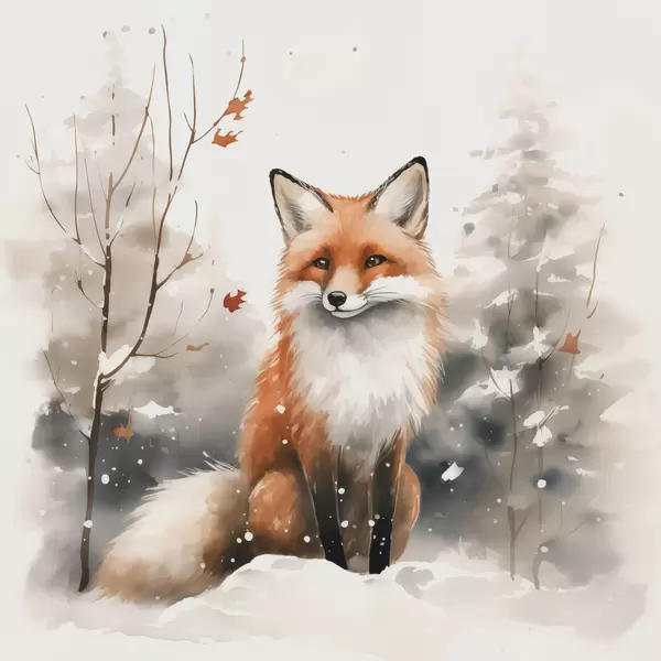 Plakatas Lapės jauniklis snieguotame miške, akvarelės imitacija f42146